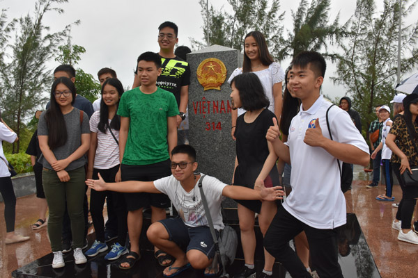 Chụp ảnh lưu niệm tại cột mốc biên giới 314