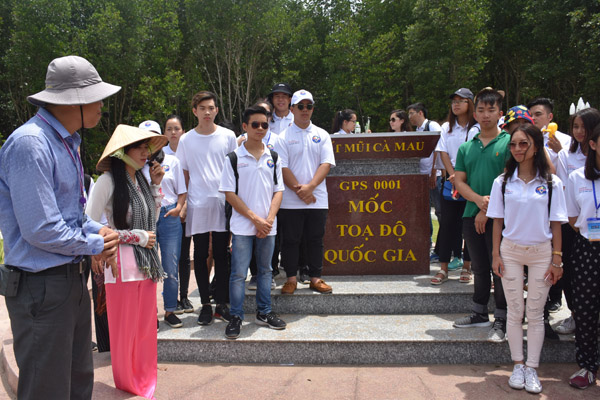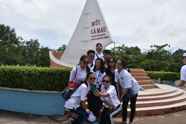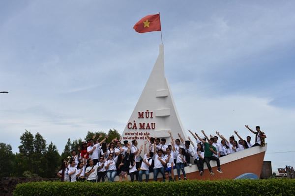 Đoàn chụp ảnh lưu niệm tại đất mũi Cà Mau