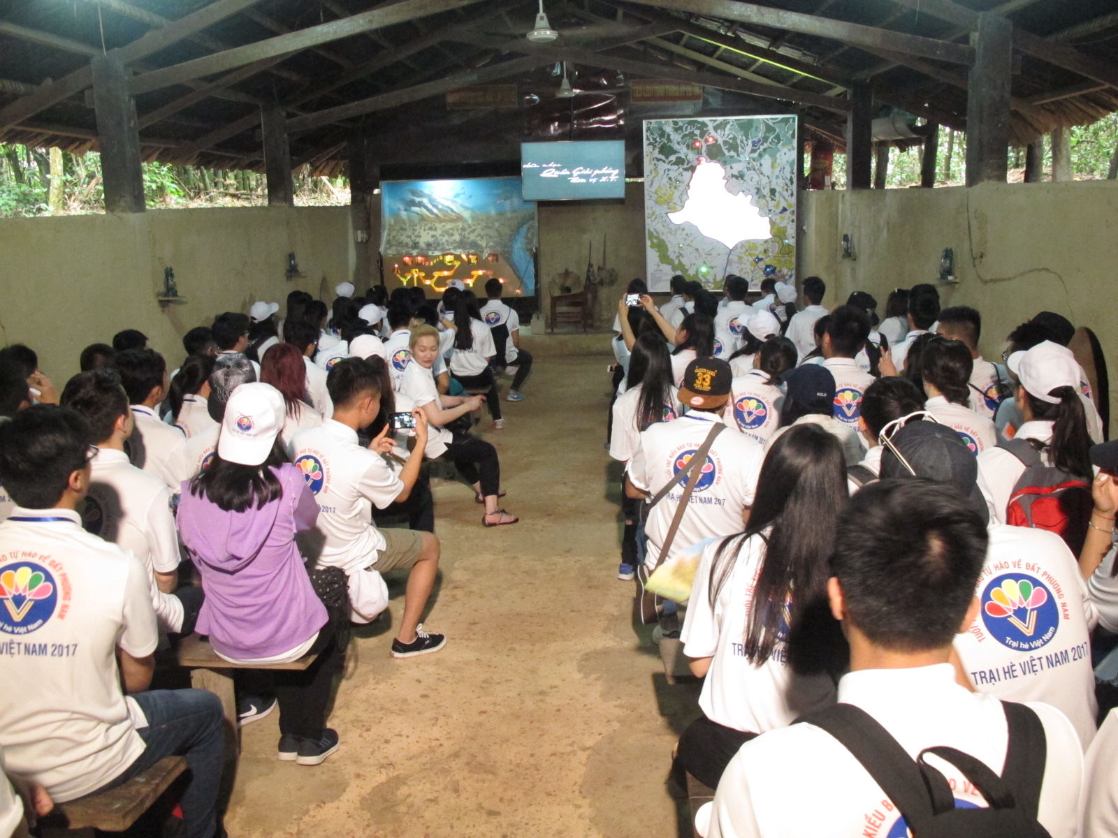 Đoàn thanh niên kiều bào tham quan bên trong địa đạo Củ Chi