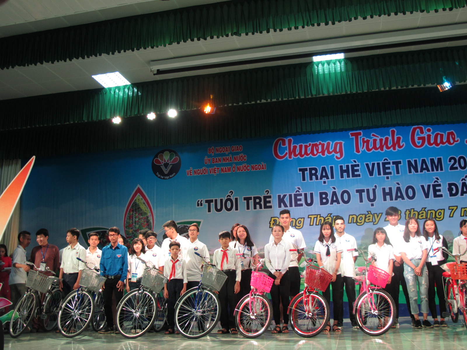 Đại diện các nhóm kiều bào trên thế giới trao tặng 13 chiếc xe đạp cho các em có hoàn cảnh khó khăn tại tỉnh Đồng Tháp