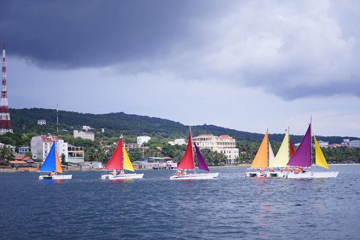 | Dịp này, du khách đến tham quan, nghỉ dưỡng tại đảo Phú Quốc sẽ được trải nghiệm thú vị khi chứng kiến những cánh buồm nhiều màu sắc trên biển trời xanh ngắt. |