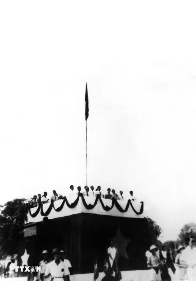| Ngày 02/9/1945, tại Quảng trường Ba Đình, Chủ tịch Hồ Chí Minh thay mặt Chính phủ lâm thời trịnh trọng đọc bản Tuyên ngôn Độc lập, tuyên bố trước quốc dân và thế giới: Nước Việt Nam Dân chủ Cộng hoà ra đời. Ảnh: Tư liệu/TTXVN |