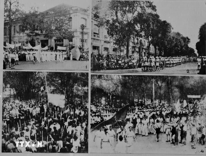 Trong ảnh: Nhân dân các tỉnh Nam Bộ vùng lên giành chính quyền trong những ngày Cách mạng Tháng Tám. Ảnh: Tư liệu/TTXVN |