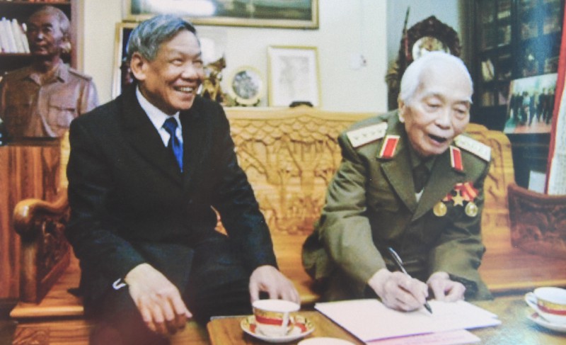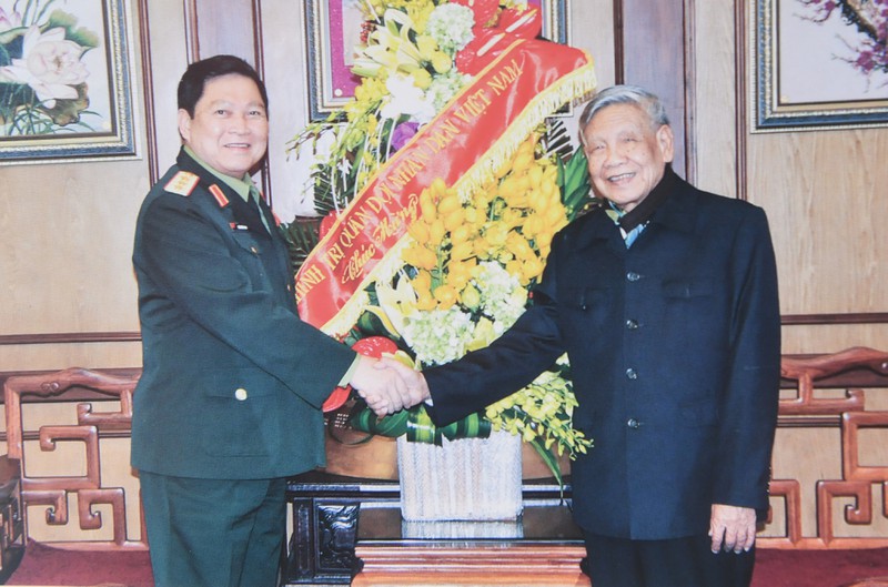 Bộ trưởng Bộ Quốc phòng - Đại tướng Ngô Xuân Lịch đến thăm Tổng Bí thư Lê Khả Phiêu. Đối với các thế hệ sau của Quân đội Nhân dân Việt Nam, Tổng Bí thư Lê Khả Phiêu căn dặn: "Phải kiên định mục tiêu Cách mạng. Không được chủ quan, mất cảnh giác với những quan điểm tư tưởng sai trái của chính bản thân mình..." Ảnh tư liệu: Sách "Lê Khả Phiêu - Ký ức thời gian", NXB Thông tấn, 2018 |