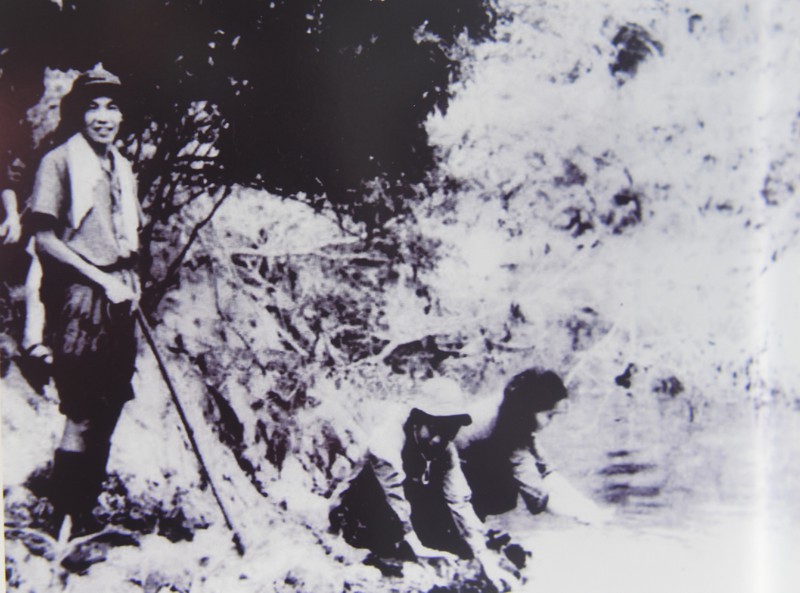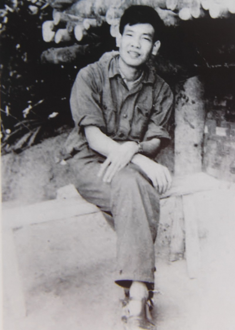 | Phút thư giãn bên hầm sở chỉ huy của Phó Chủ nhiệm Chính trị Quân khu Trị Thiên - Lê Khả Phiêu. (Ảnh chụp năm 1968) |