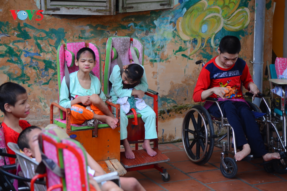 | Hơn 40 trẻ sơ sinh tại đây đều mồ côi cha mẹ, bị khiếm khuyết thân thể hoặc các bệnh như bênh đầu nhỏ, bại não... |