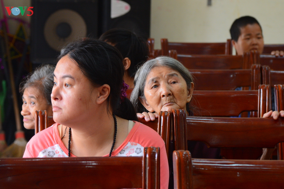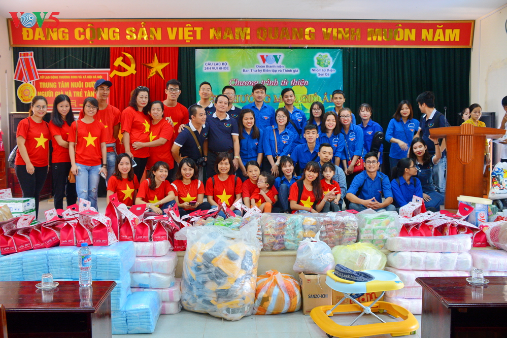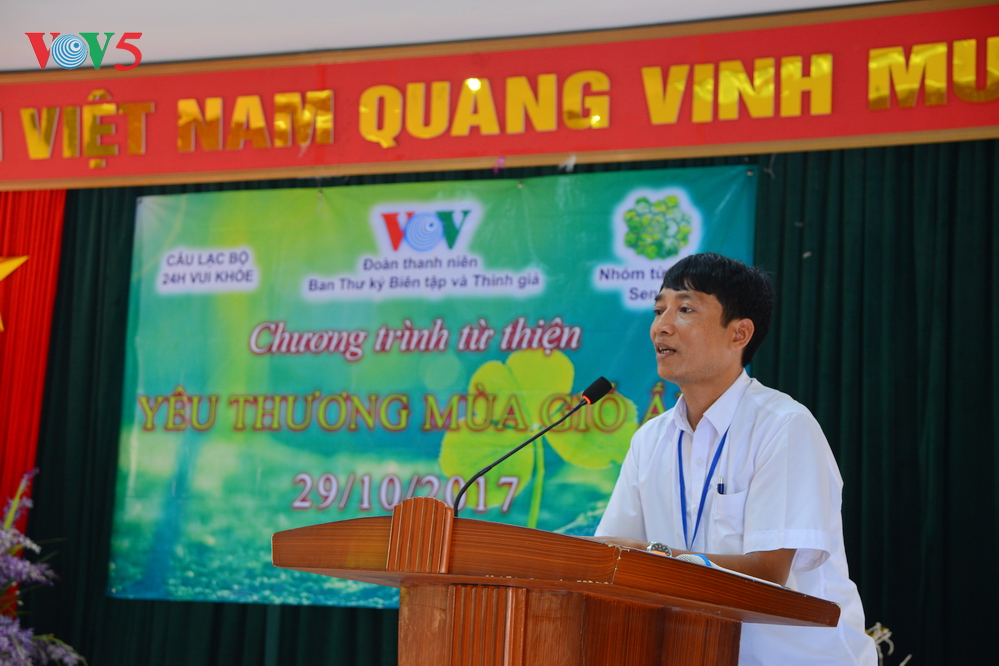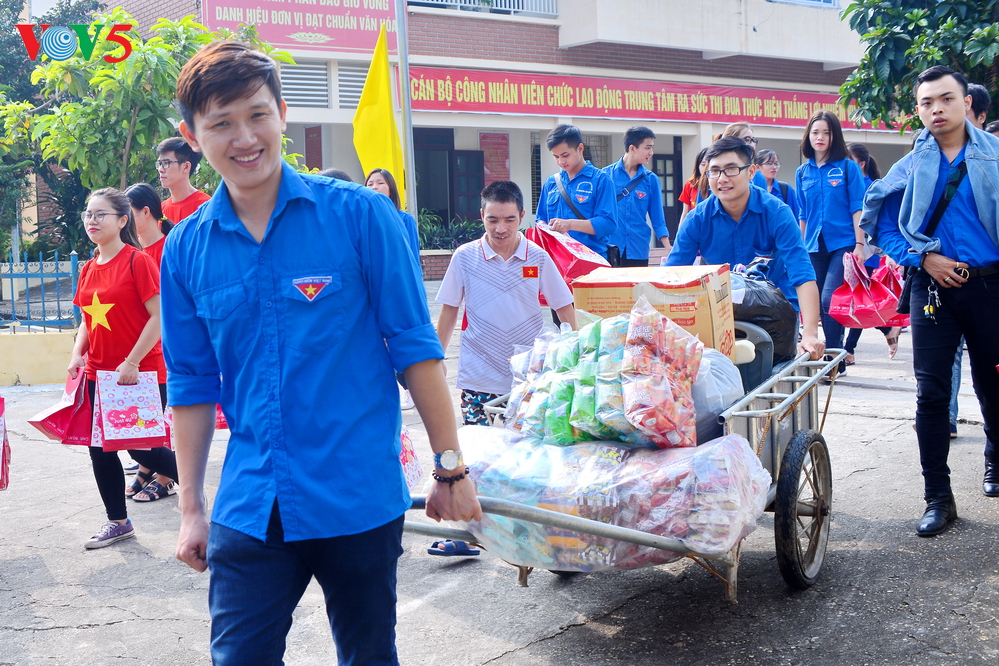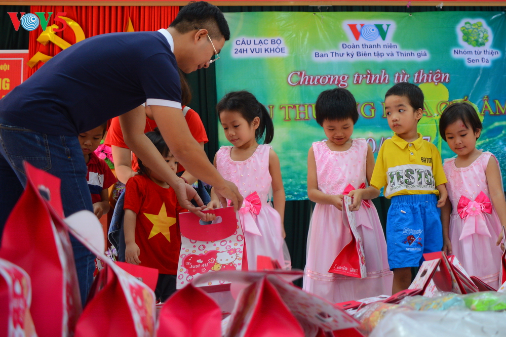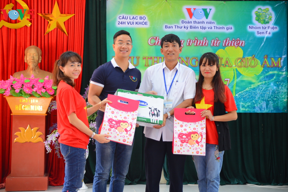 | Đại diện Đoàn thanh niên Ban Thư ký biên tập và thính giả Đài TNVN trao quà cho các em nhỏ. |