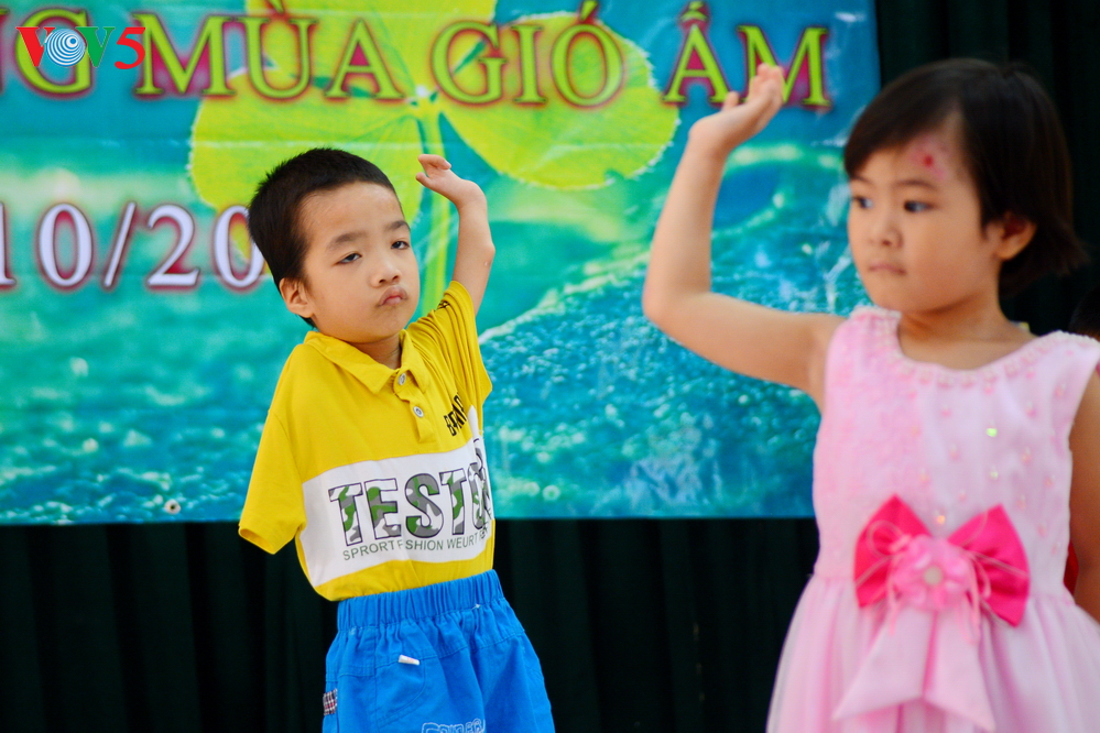 | Những em nhỏ với thân thể khuyết tật, đôi tay không lành lặn, vẫn hết mình tham gia hoạt động giao lưu văn nghệ. Tiết mục của các em đã để lại ấn tượng sâu sắc cho đoàn. |