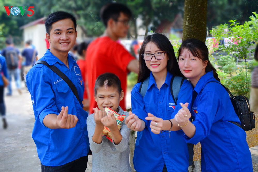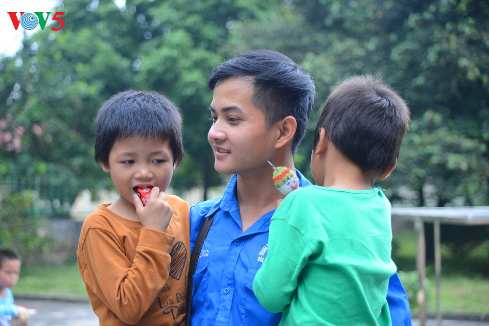 | Trưởng đoàn thanh niên tình nguyện ĐH Kinh doanh và Công nghệ, bạn Nguyễn Đức Hải chia sẻ, Hải coi các em như chính em ruột của mình, cũng các em chơi nhiều trò chơi như đá bóng, đuổi bắt hoặc đóng kịch gia đình... Hải cũng luôn động viên các em phải không ngừng cố gắng vượt lên số phận để có tương lai tốt đẹp hơn. |
