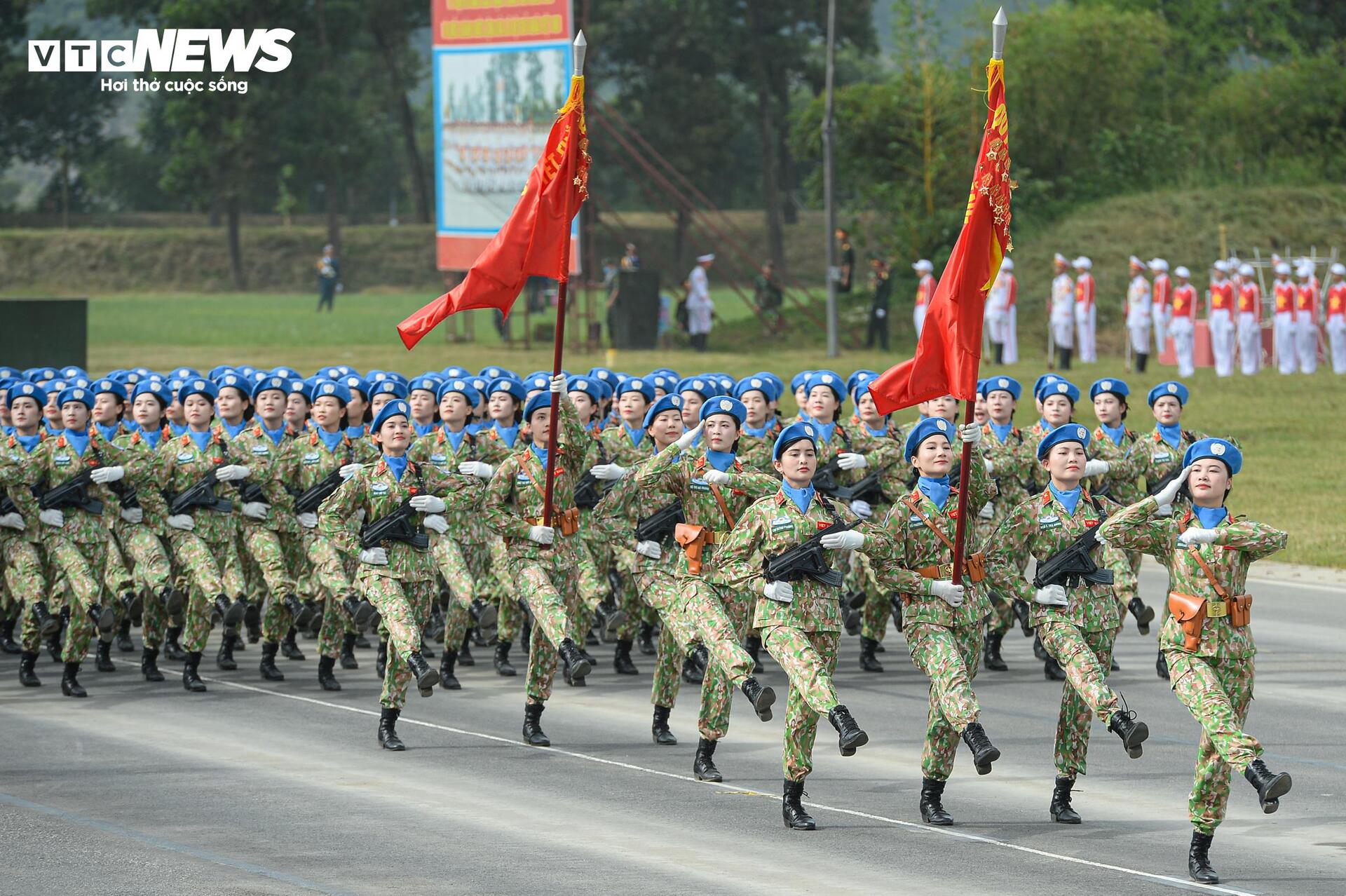 | Khối nữ sĩ quan Gìn giữ hoà bình diễu binh qua lễ đài. |