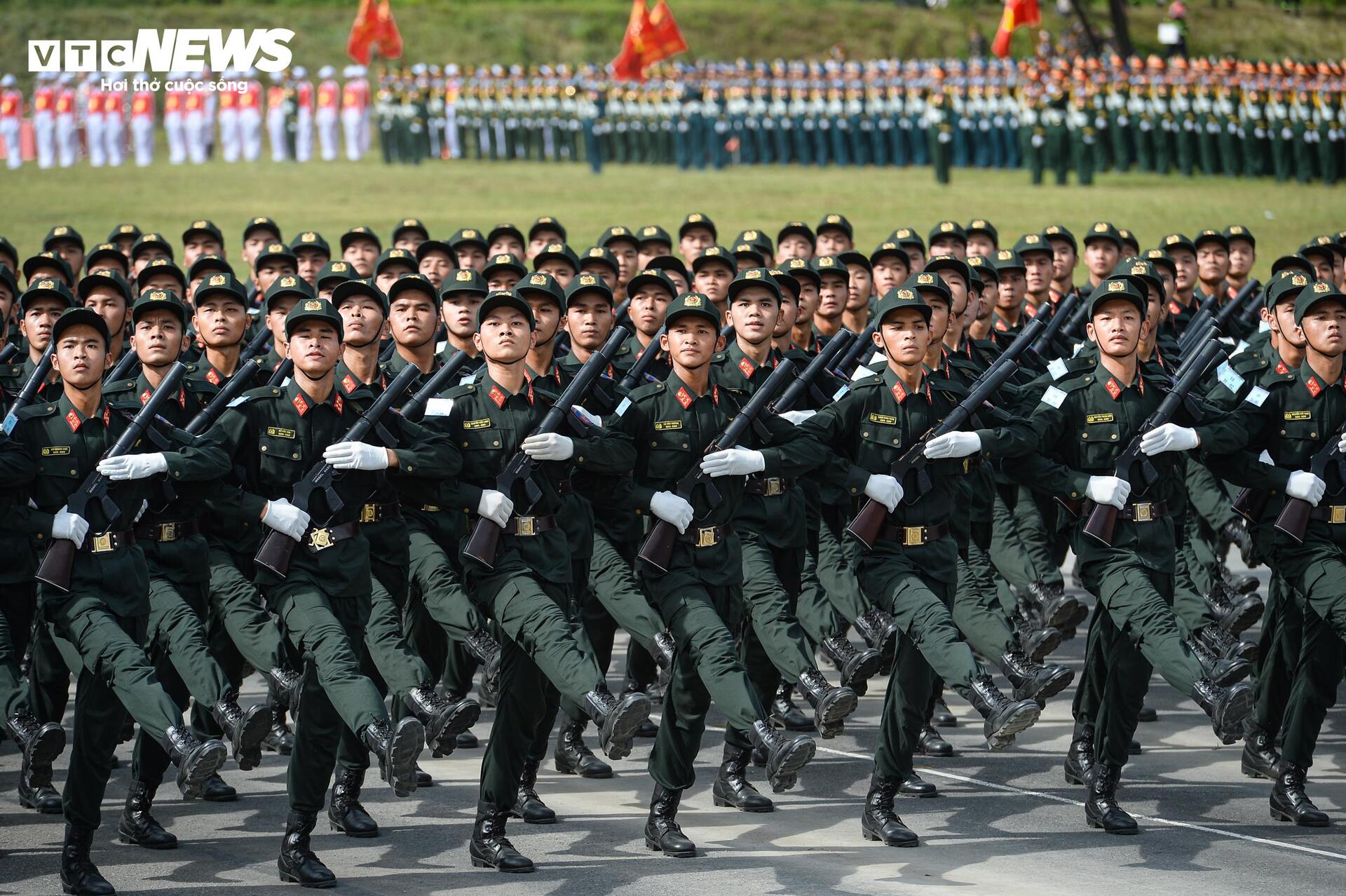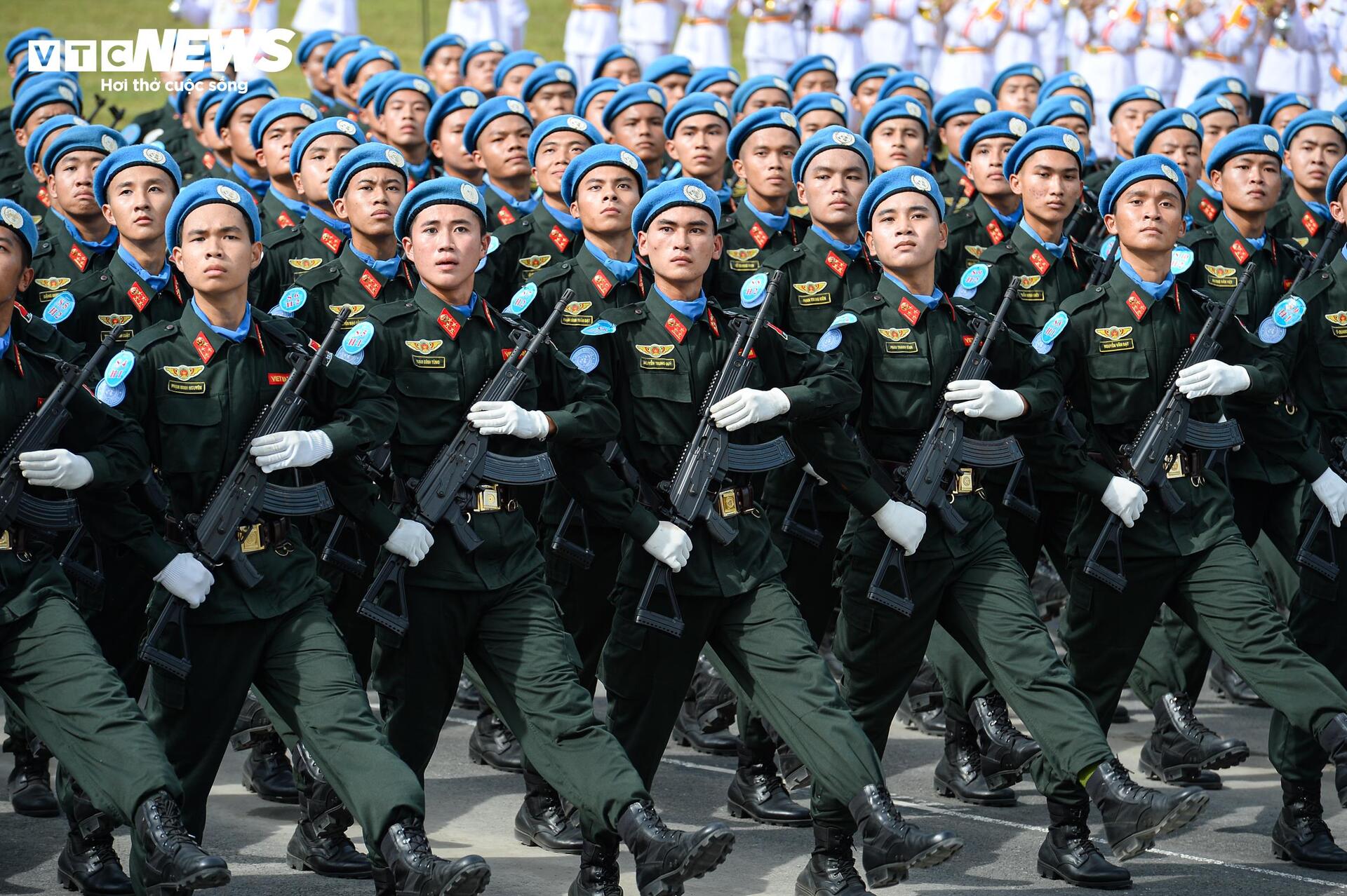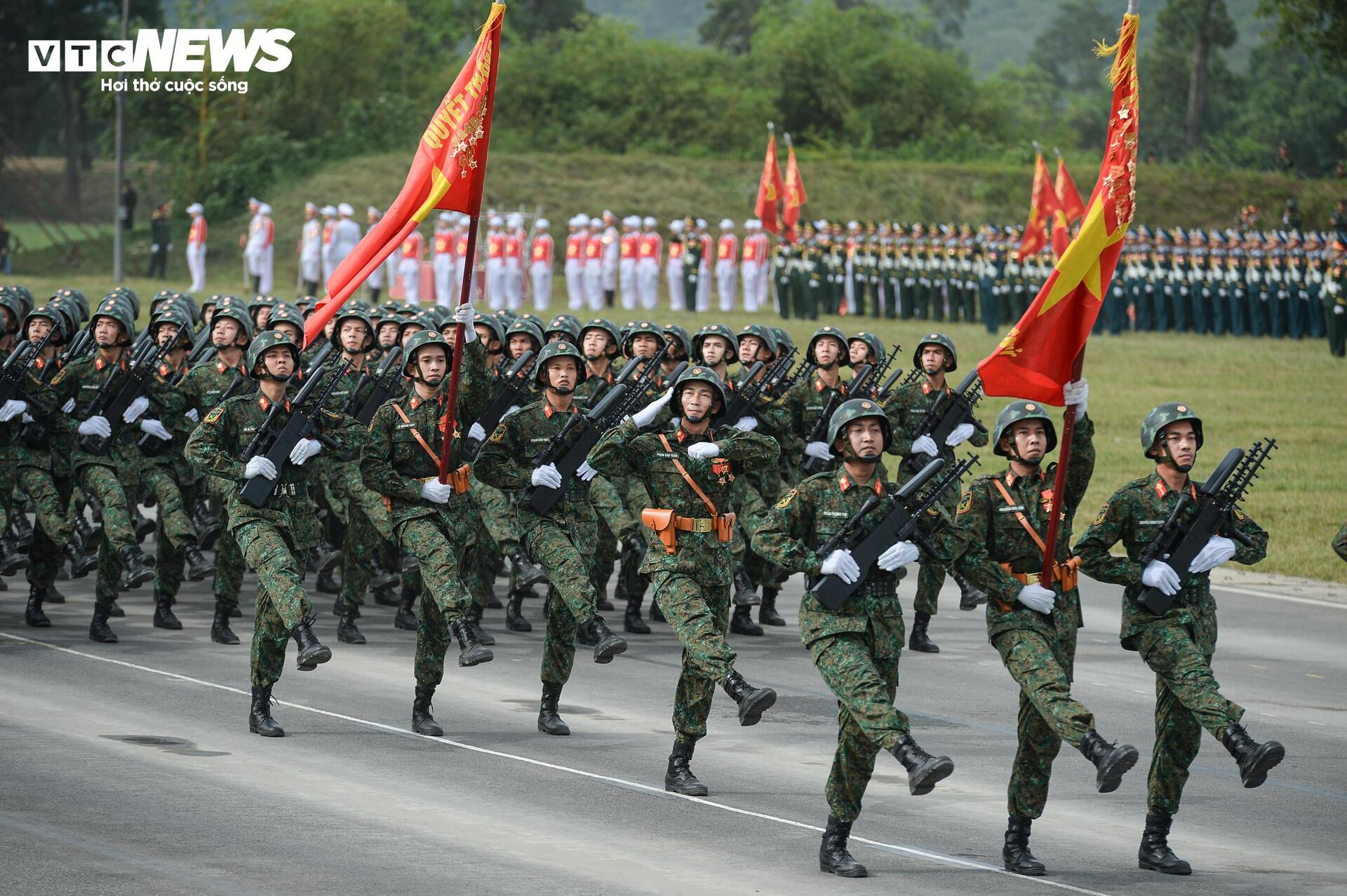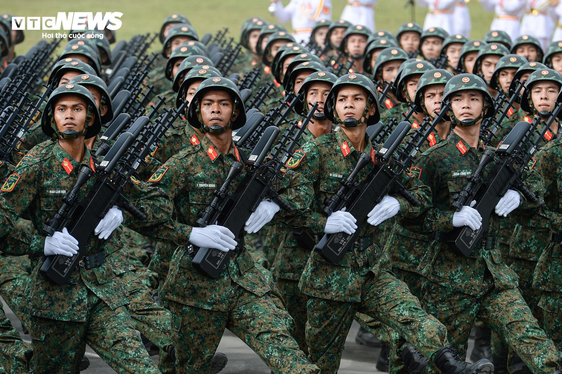 | Hình ảnh các khối diễu binh diễu hành của lực lượng Quân đội nhân dân đi qua lễ đài. |
