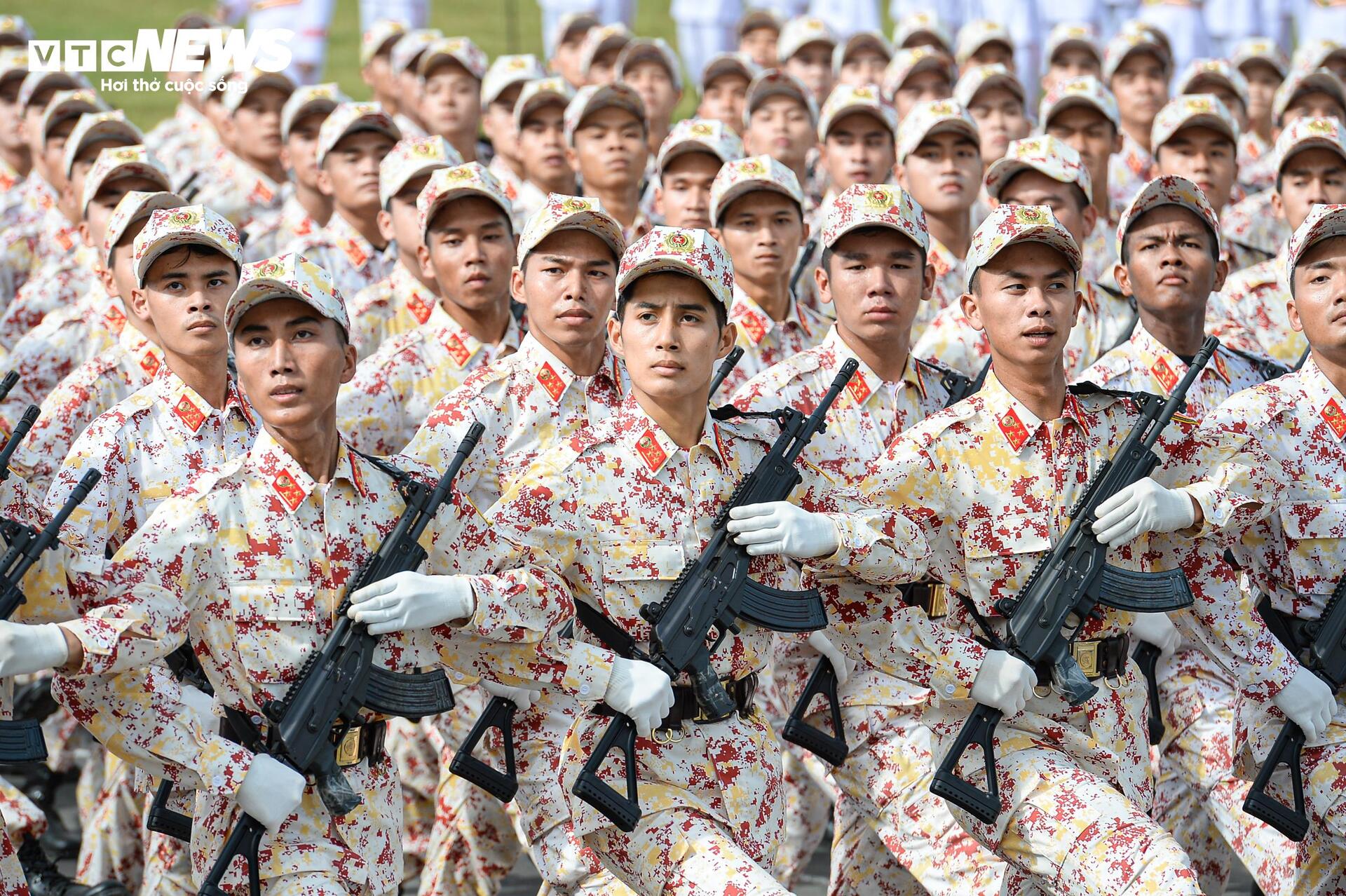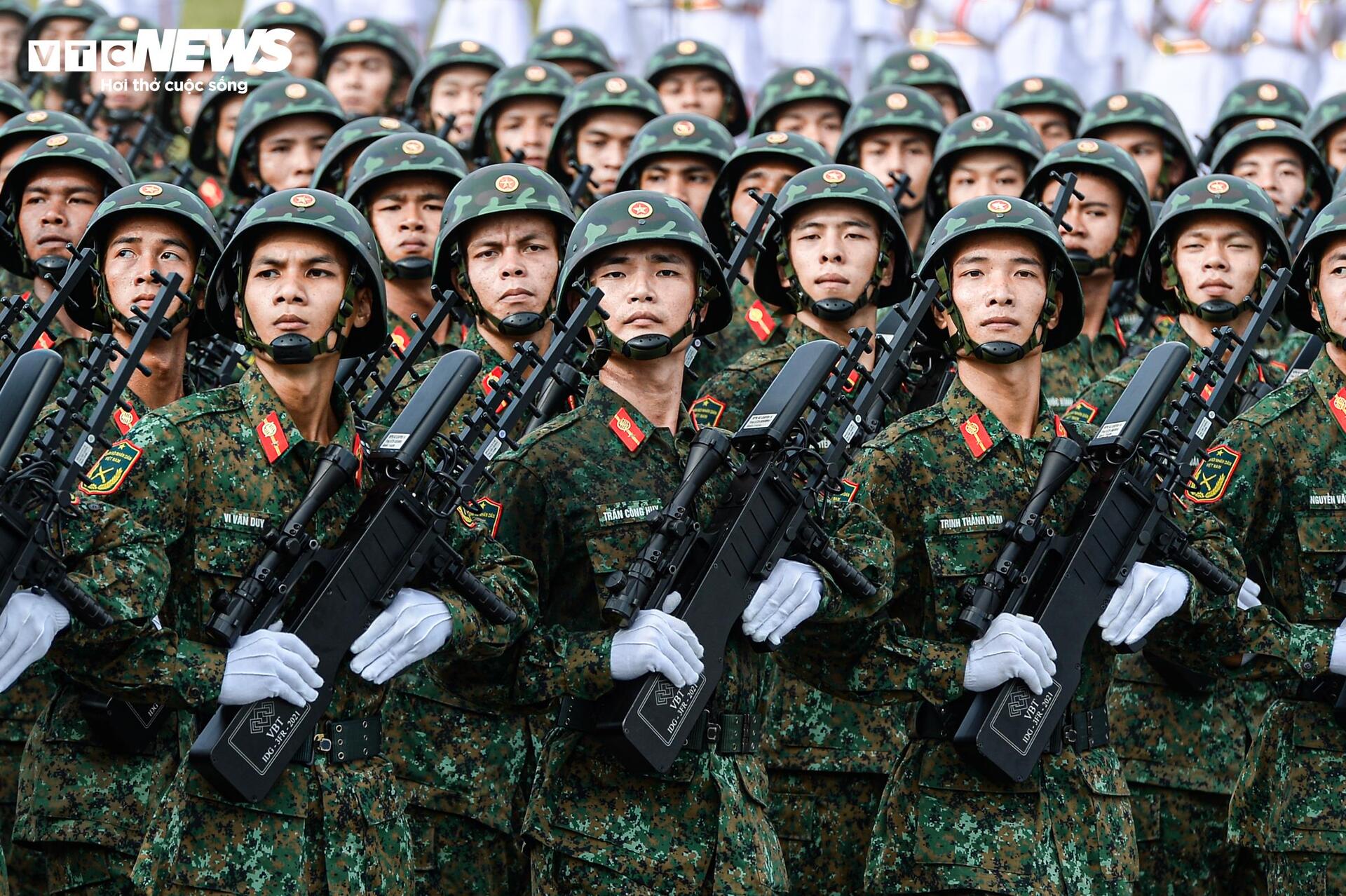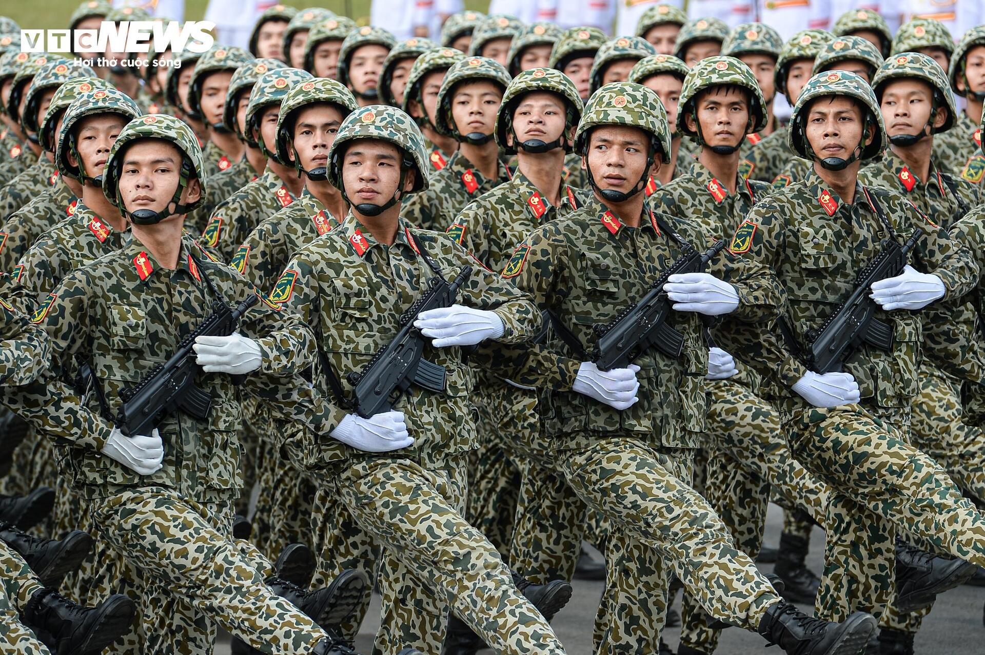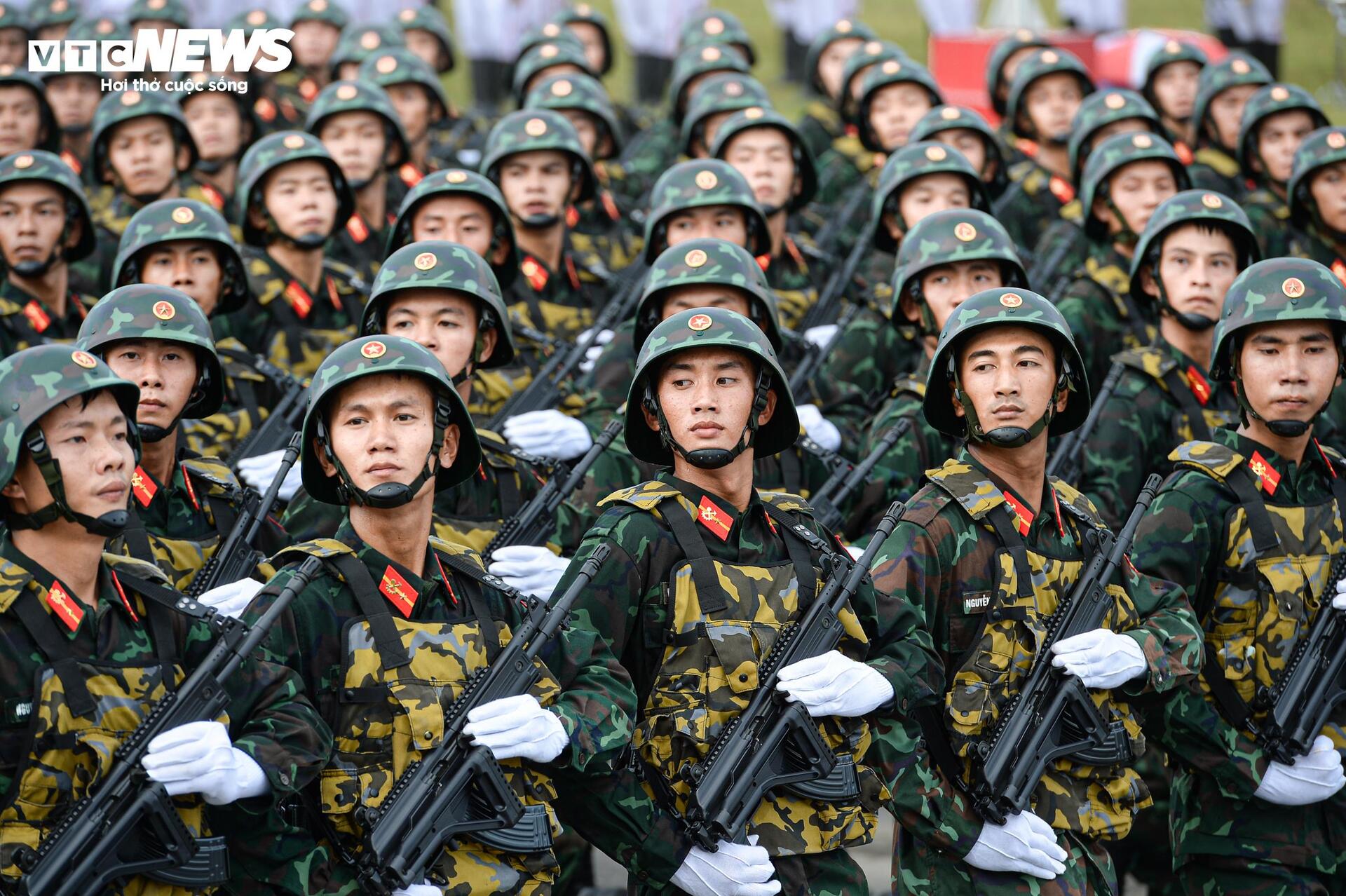 | Hình ảnh các khối diễu binh diễu hành của lực lượng Quân đội nhân dân đi qua lễ đài. |