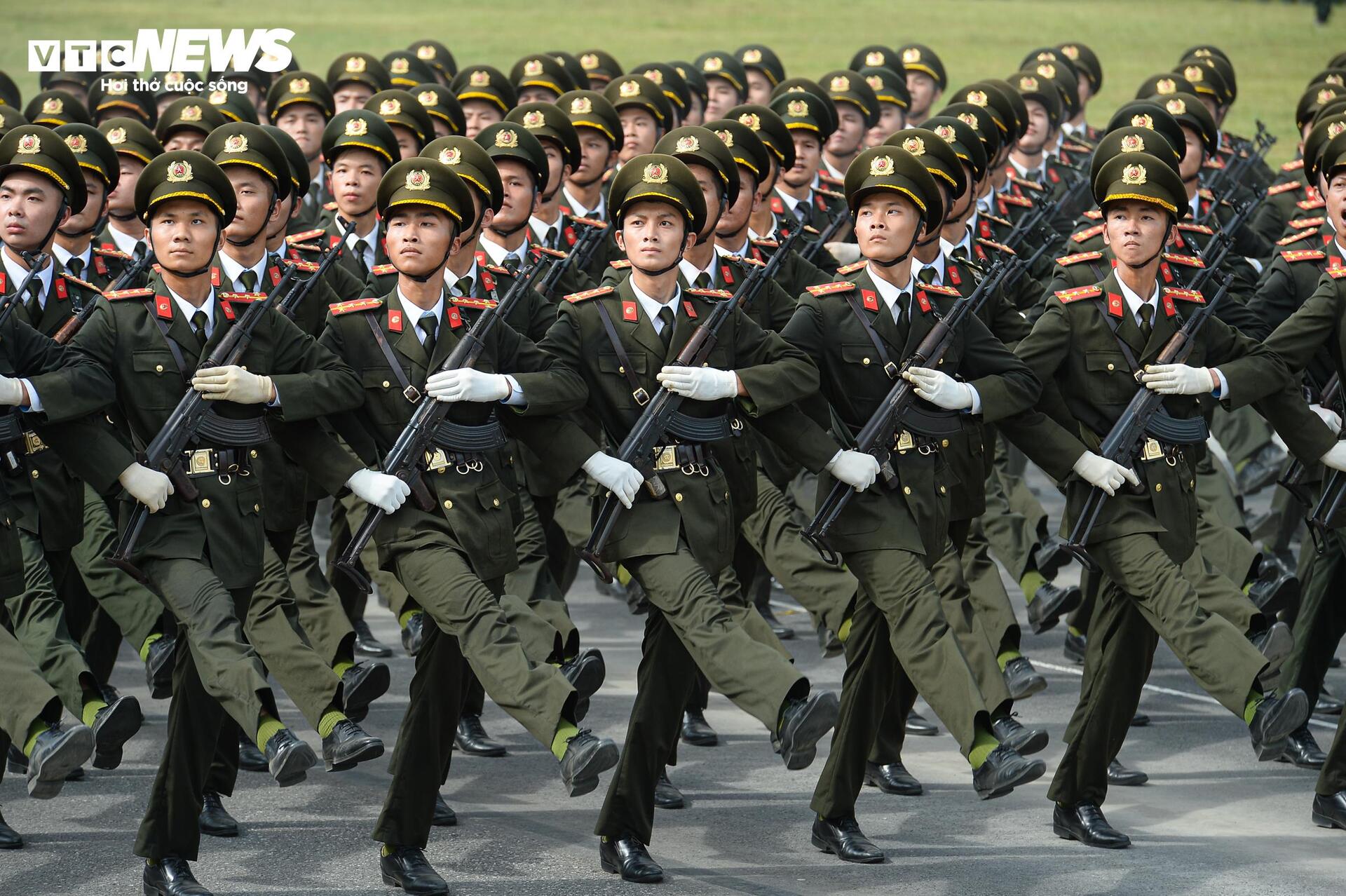 | Hình ảnh các khối diễu binh, diễu hành của lực lượng Công an nhân dân diễu binh qua lễ đài trong buổi tổng hợp luyện ngày 5/8. |