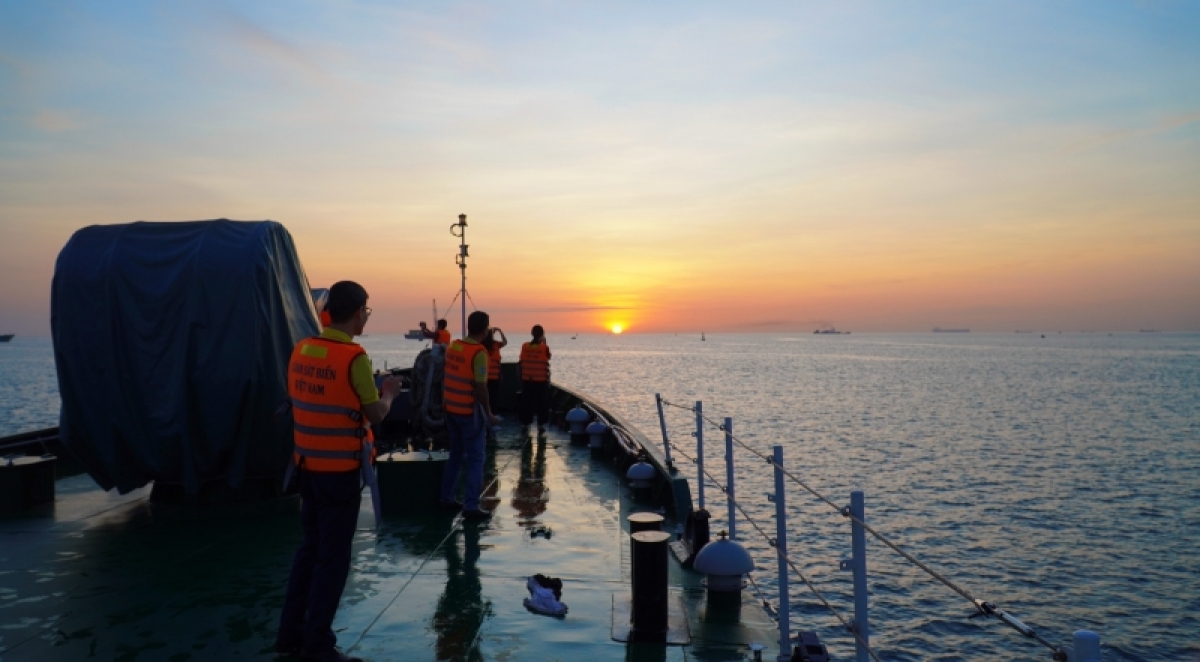Trong quá trình tác nghiệp, nhiều phóng viên cùng lực lượng chức năng ra khơi dài ngày. |