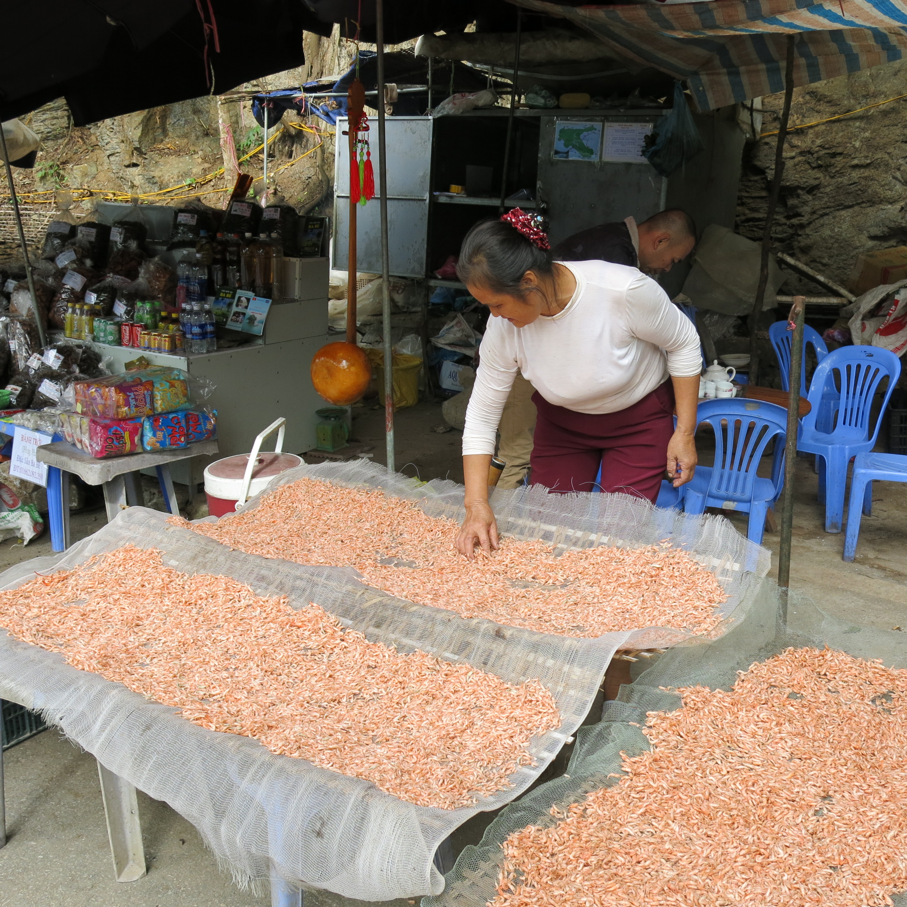 | Món tép hồ Ba Bể cũng là món ăn ngon. Tép ở đây tròn mẩy, rang lên đỏ sậm. Tém nấu với khế chua hoặc nấu canh, ăn ngọt. |