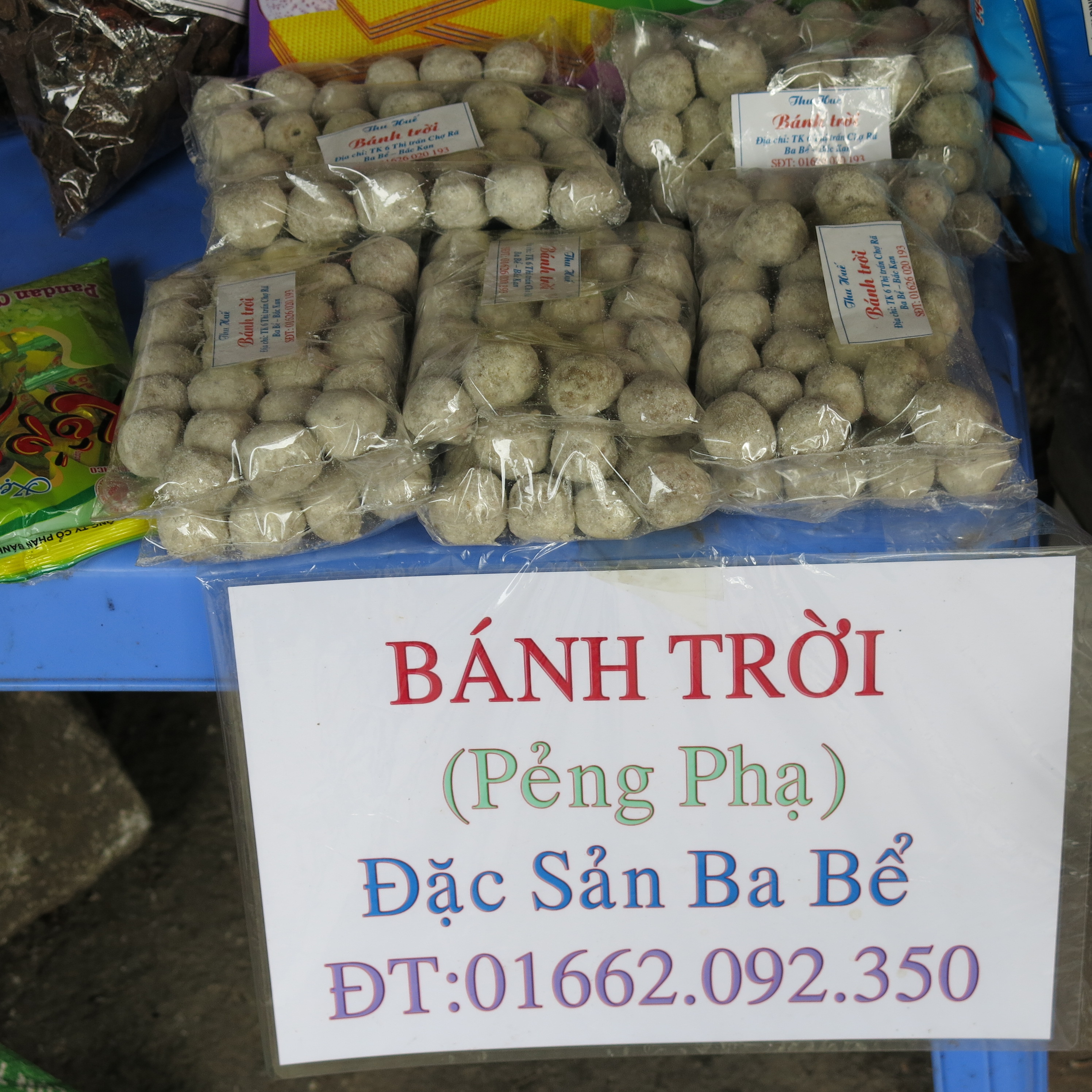 | Người Tày khéo tay làm rất nhiều loại bánh như bánh Ngãi, bánh chuối hay như bánh trời. Bánh trời, hay còn gọi là pẻng phạ (theo tiếng Tày), một món bánh quý của người Tày ở Bắc Cạn, là một phần không thể thiếu trong các mâm lễ cúng đón năm mới, lễ mừng xuống đồng. Nguyên liệu làm bánh là gạo nếp, rượu trắng, chè mạn và đường mía. |