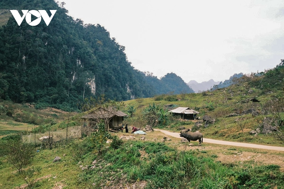 Chiều hôm đó, hai du khách được người chủ nhà dẫn đến hang Táu theo đường đi rừng, ngang qua các lán, trại gia súc. Những cánh đồng dưới thung lũng, thửa ruộng bậc thang, nương ngô, nương sắn là nơi người dân, chủ yếu là dân tộc Mông, đang cần cù lao động. |