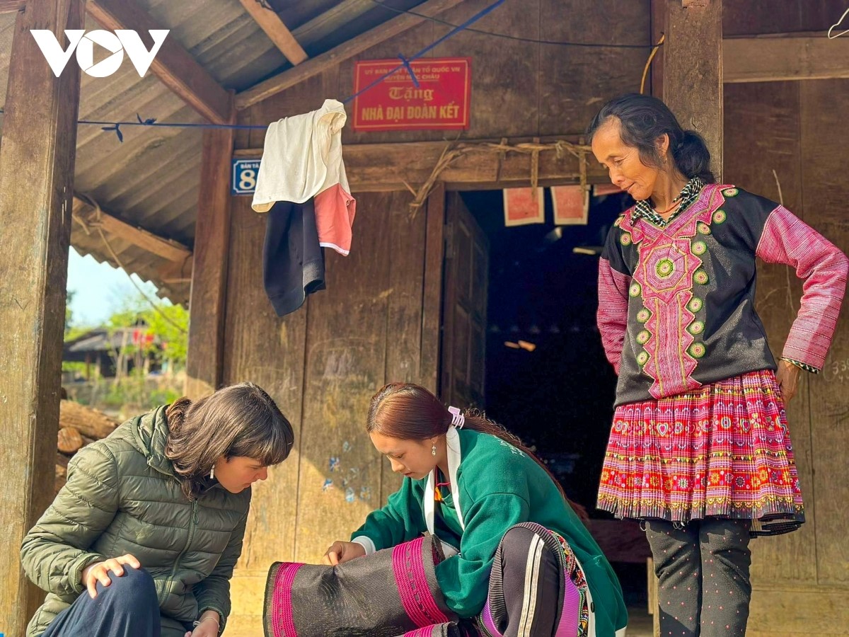 Nếu đến thăm Tà Số vào dịp đầu năm, thời điểm này tiết trời se se lạnh, một vài nơi đã có hoa đào khoe sắc ở xã Chiềng Hoắc. Hai du khách từ TP. Hồ Chí Minh đã có những trải nghiệm đáng nhớ tại Mộc Châu, riêng Trân mang về một bộ váy thêu tay của người Mông. |