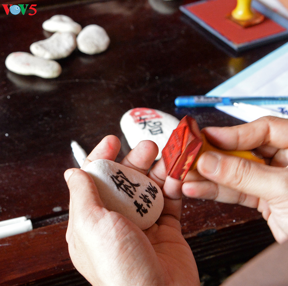 Các đại biểu khi ra thăm Trường Sa thường vào chùa xin viên đá nhỏ có đóng dấu nhà chùa về làm kỷ niệm. |
