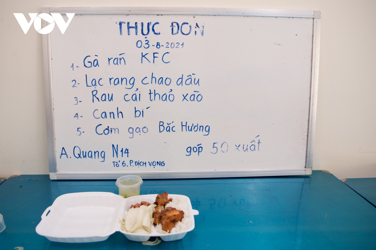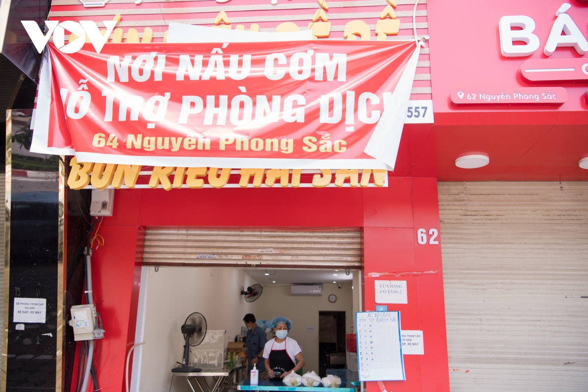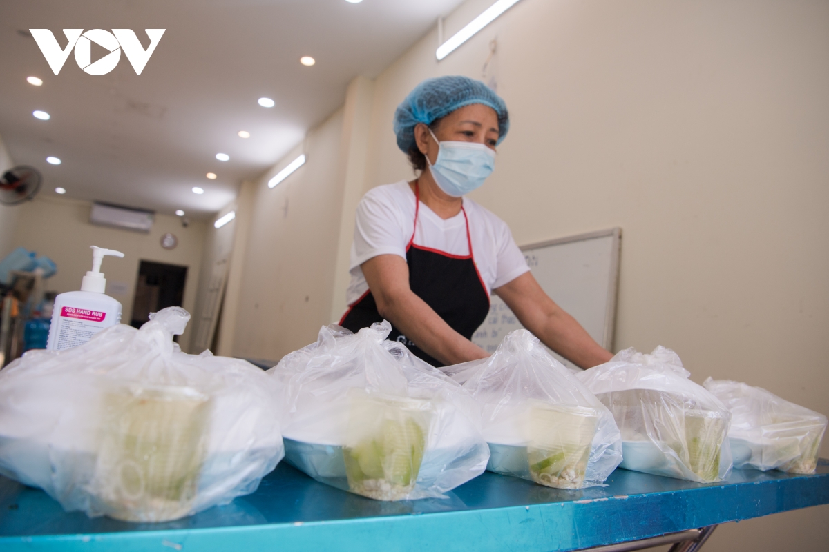 Tại địa chỉ 64 Nguyễn Phong Sắc, những suất cơm đã được đóng gói cẩn thận chờ người dân đến lấy.