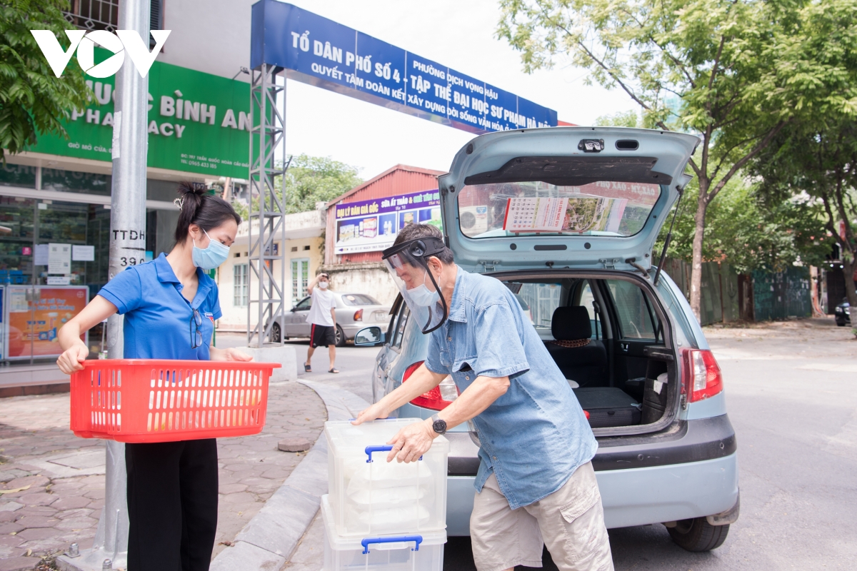 Chú Tuân dùng xe ô tô riêng của mình để vận chuyển những suất ăn đến 4 khu vực tại phường Quan Hoa, phường Dịch Vọng, phương Dịch Vọng Hậu và phường Nghĩa Tân.