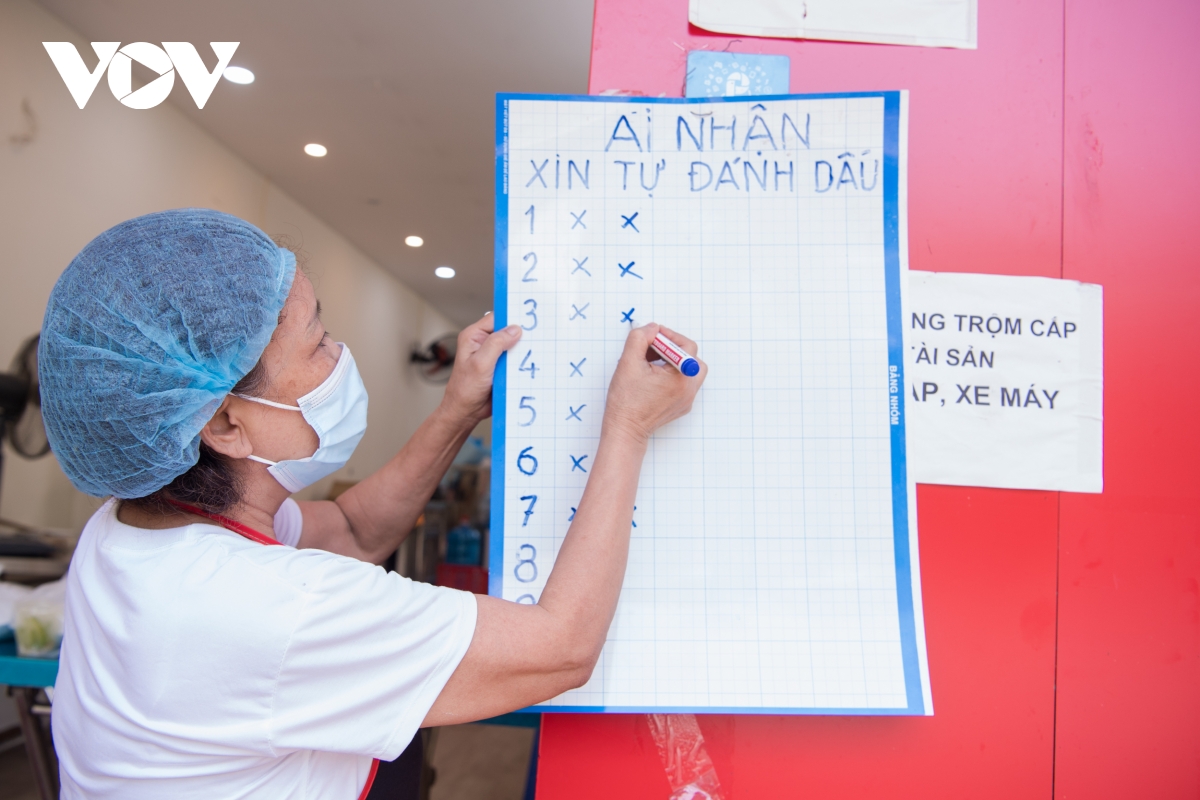 Cô Phạm Thị Thủy, người đảm nhận việc lên thực đơn cũng như là chế biến món ăn của chương trình cho biết: "Trong lúc dịch bệnh diễn biến phức tạp, cô phải nghỉ bán hàng cơm nhưng vẫn giữ "lửa" trong bếp để hỗ trợ bà con gặp hoàn cảnh khó khăn như người khuyết tật, người cao tuổi trong khu dân cư mình đang sống cũng như là các khu vực lân cận trong quận Cầu Giấy".