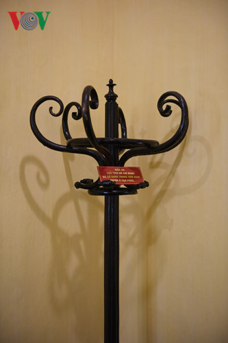 | Trong phòng nơi Bác ở còn có chiếc mắc áo được kê lại để phù hợp với sinh hoạt của Bác. |