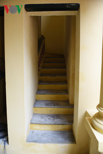 | Cầu thang lên tầng 2, đây chính là nơi ở và làm việc của Chủ tịch Hồ Chí Minh. |