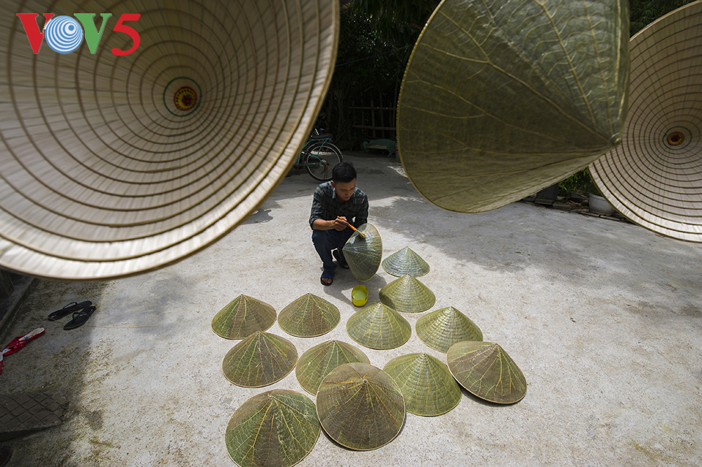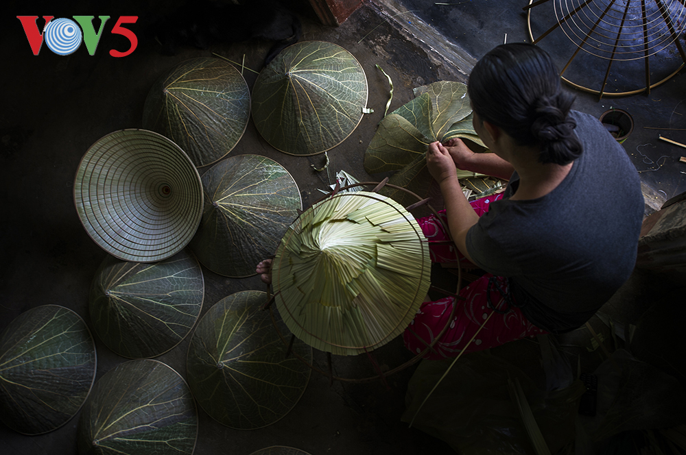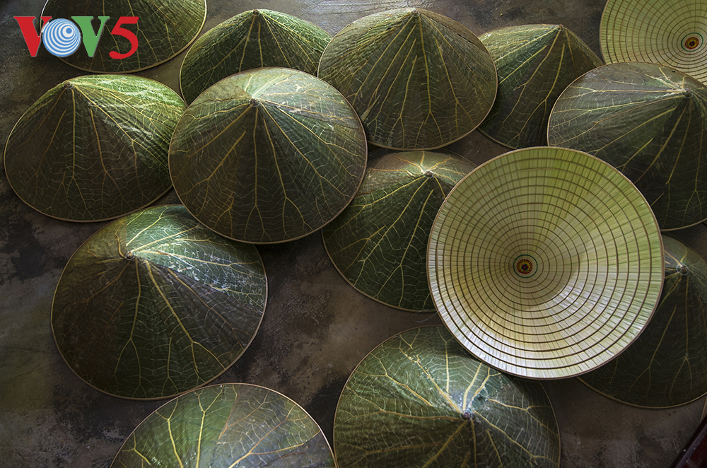 (VOV5) - Hình anh chiếc nón Huế luôn là vật phẩm khiến cho nhiều du khách gần xa thích thú. Nón Huế thể hiện sự tỉ mỉ, sự trau chuốt của các mẹ, các chị dày công làm nên. Và giờ đây khi bạn đến với Huế, bạn sẽ có cơ hội được nhìn ngắm những chiếc nón được làm từ lá sen mang đậm chất sáng tạo của một người con xứ Huế.