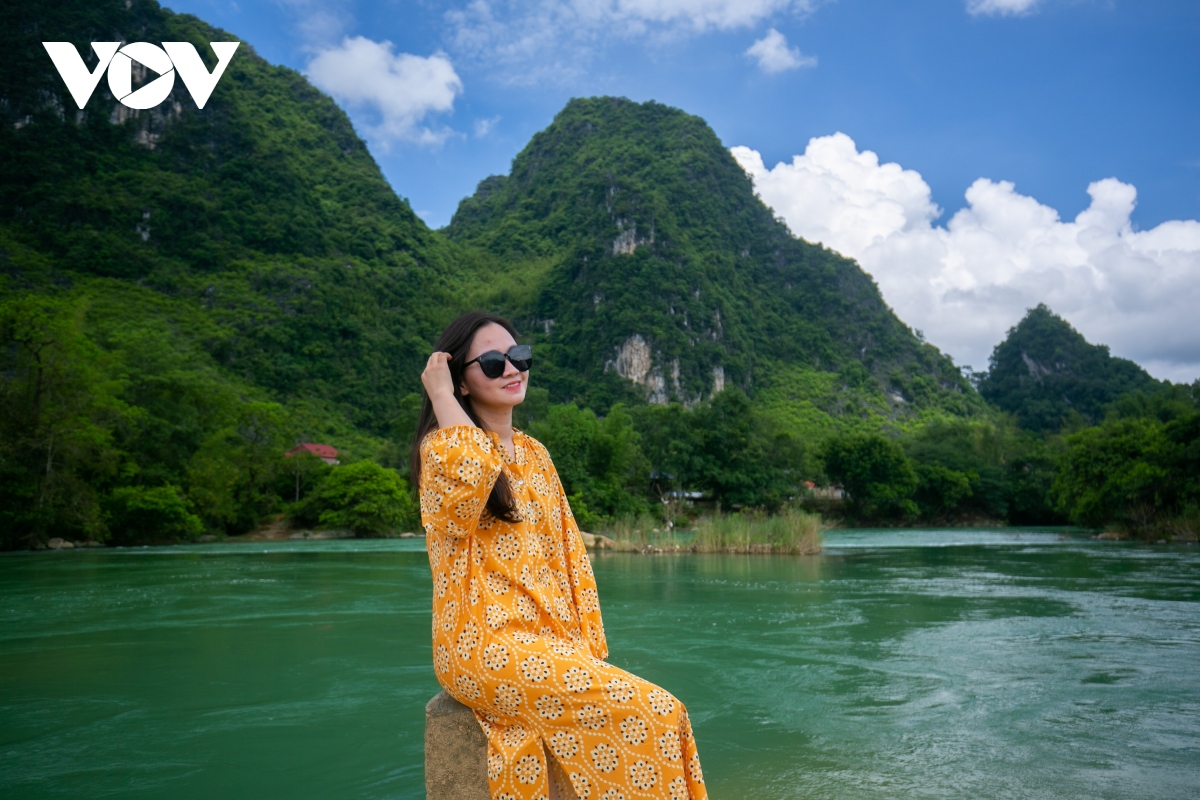 Nhiều du khách khi đến với Cao Bằng tìm đến dòng Quây Sơn để check-in cùng vẻ đẹp non nước hữu tình.