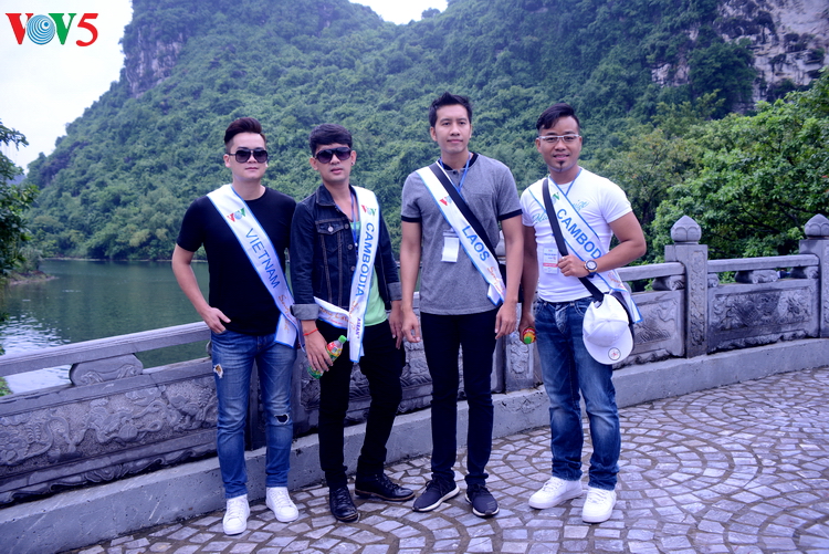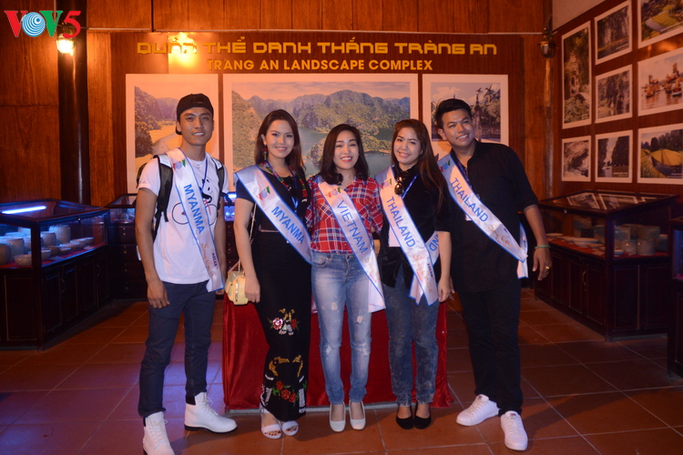 | Từ trái sang: Ca sĩ Aung Hteta và Ni Ni Khin Zaw (Myanmar), ca sĩ Thu Lan (Việt Nam); ca sĩ Marutida Boonmongkol và Paisarn Sungoon (Thái Lan) cùng chụp ảnh tại khu trưng bày di tích quần thể danh thắng Tràng An. |
