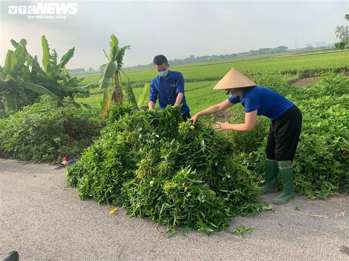 Khoảng 3.000 mớ rau được hái từ ruộng của các gia đình trong phường Kim Chân được cung ứng cho người dân vùng dịch.