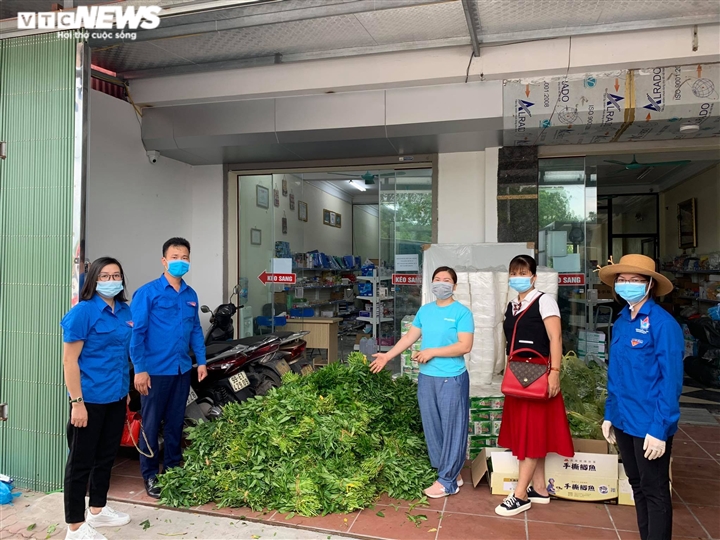 Chị Phạm Thị Hạnh (đứng thứ 3 từ trái sang) cho biết, Đoàn Thanh niên phường Kim Chân vẫn tiếp tục kêu gọi các gia đình có ruộng rau không thể thu hoạch hoặc không sử dụng hết thì ủng hộ bà con nhân dân đang trong khu vực bị cách ly, không hạn chế về số lượng và chủng loại.