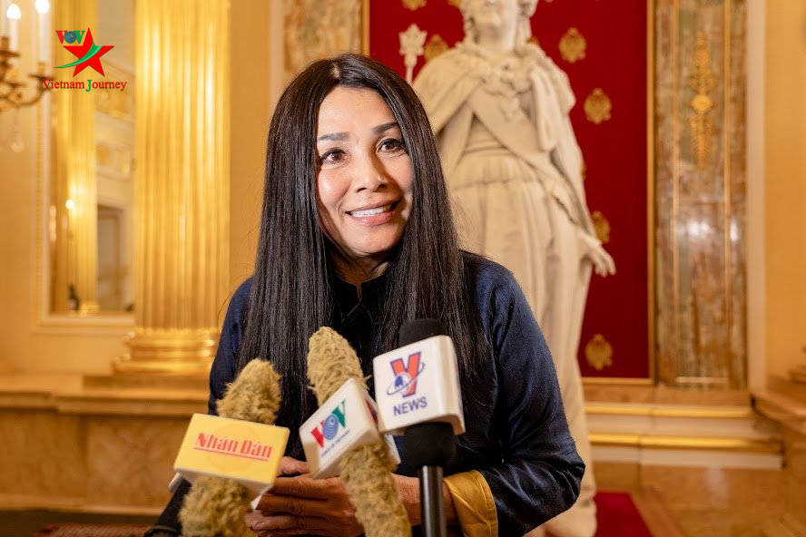 Trong không gian lộng lẫy của sảnh Catherine, những tà áo dài, váy lụa, thổ cẩm thướt tha càng trở nên hấp dẫn với sự trình diễn điêu luyện của những người mẫu Nga, Việt Nam cùng những bản nhạc dân tộc đặc sắc do các nghệ sĩ Việt Nam biểu diễn.