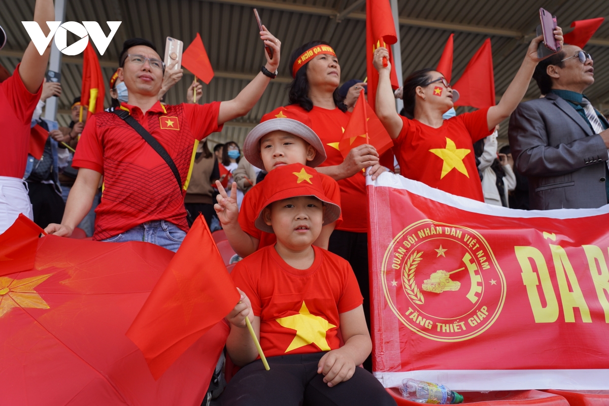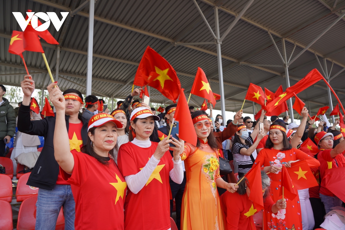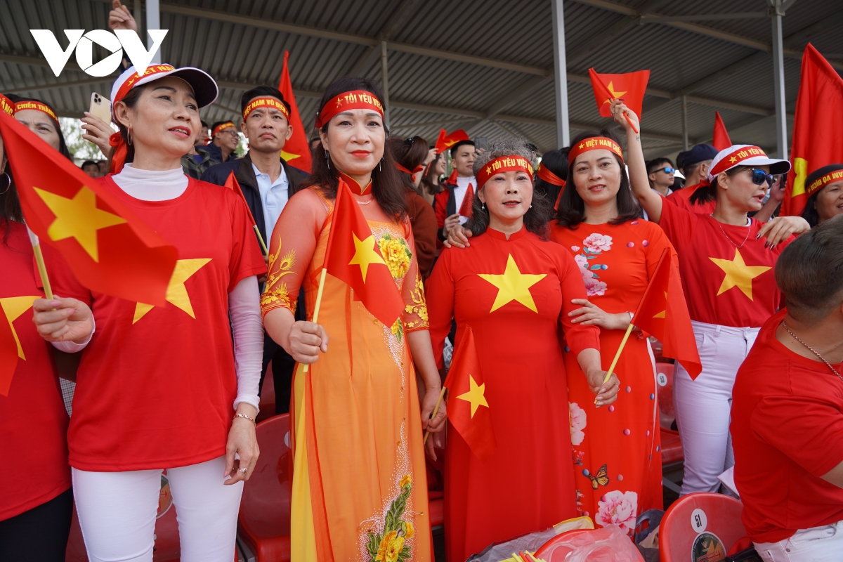 Các tiếng hô vang đồng thanh “Việt Nam”, “Việt Nam chiến thắng”, “Việt Nam cố lên”, “Việt Nam vô địch” không ngớt trên các khán đài. |