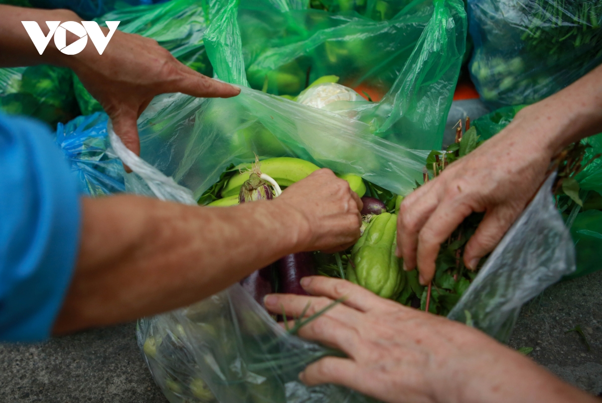 “Những ngày đầu chúng tôi tự hái rau ở trong vườn của mình, khi gom đủ số lượng sẽ đưa đến điểm đã chọn từ trước để phát cho mọi người, những ai gặp khó khăn đều có thể đến lấy miễn phí. Tuy nhiên, nhận thấy vẫn còn nhiều người gặp khó khăn cần đến sự ủng hộ, nên chúng tôi đã dùng tiền túi ra mua ở chợ gần nhà để mang sang. Thấy việc làm này của chúng tôi nên nhiều nhà hảo tâm cũng ủng hộ”, bà Ngoan cho hay.
