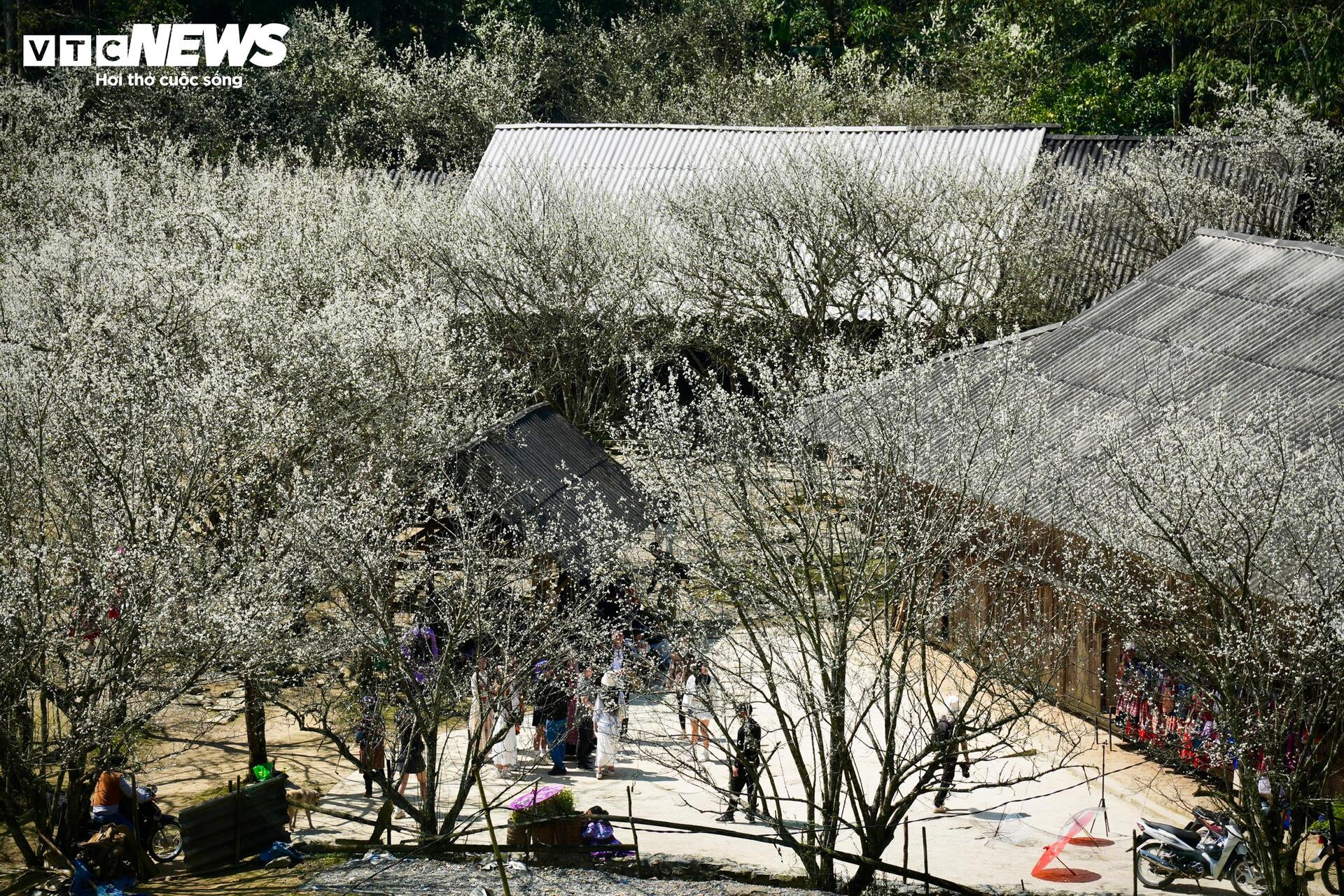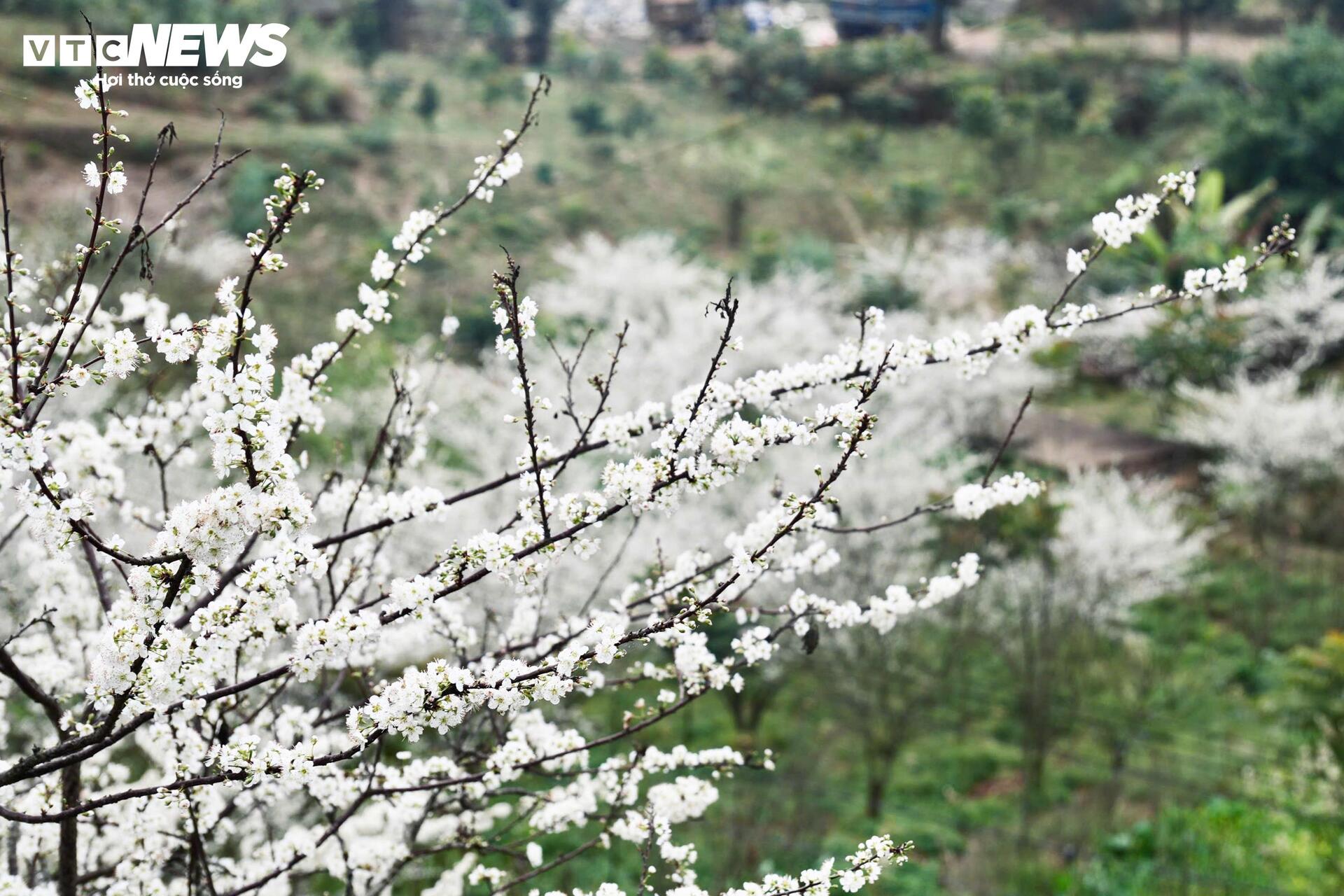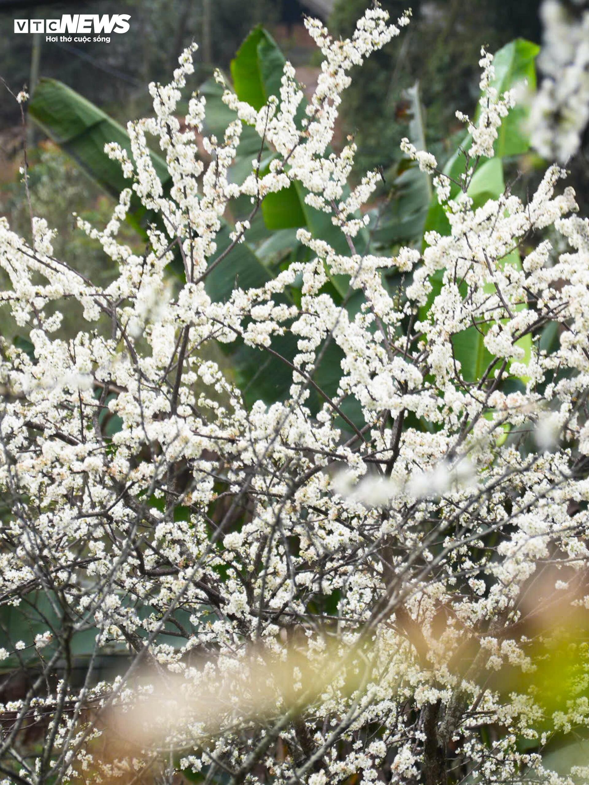 Hoa mận có năm cánh màu trắng, nhị vàng nhạt, nở thành từng chùm dày trên cành cây đã trút lá. Khi vào chính vụ, hoa phủ kín cành, tạo thành những mảng trắng liên tiếp. Mùa hoa thường kéo dài khoảng 2-3 tuần, tùy thời tiết từng năm.