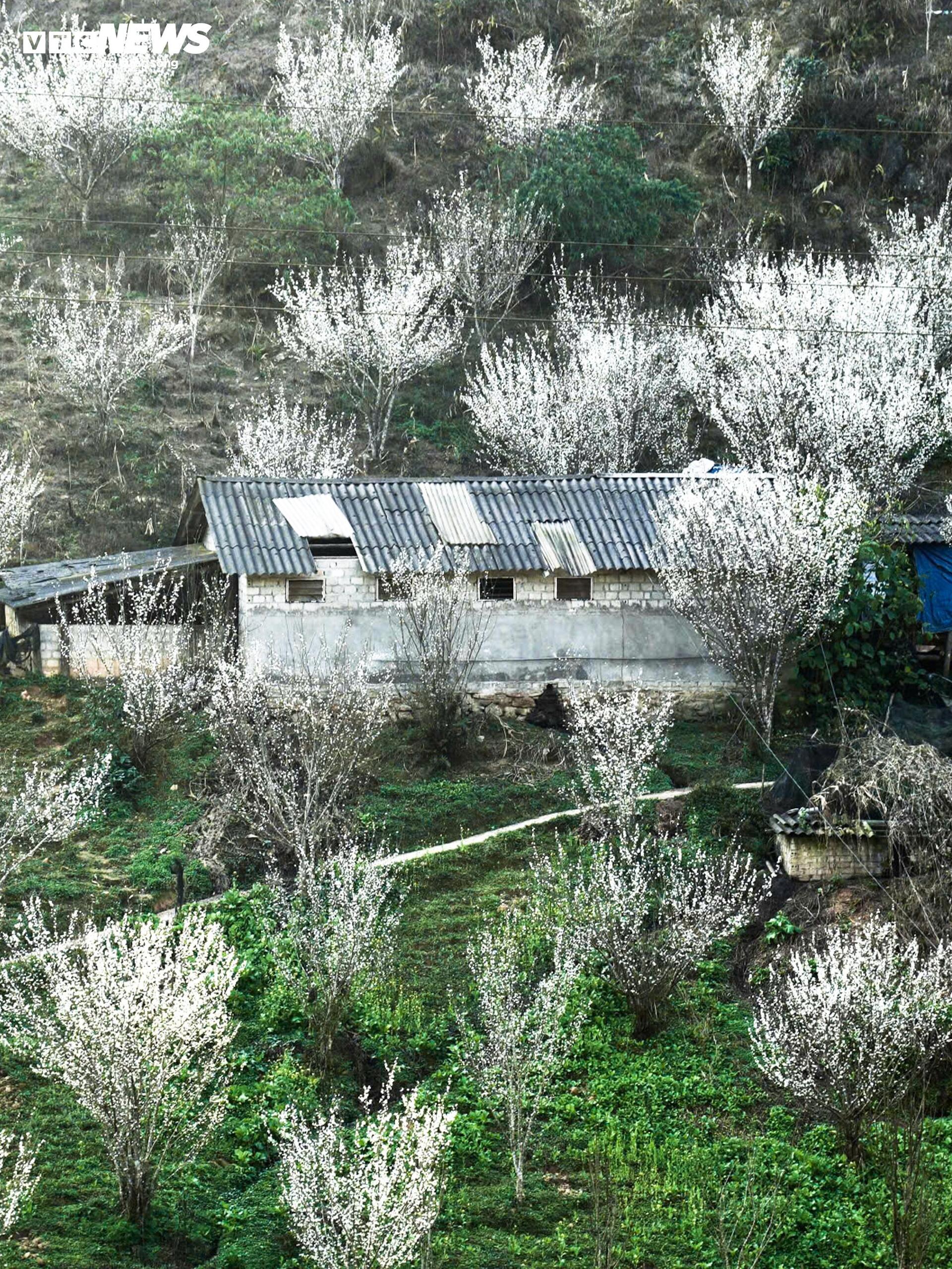 Từ xa nhìn lại, những sườn núi như được phủ lớp trắng tinh khôi, xen lẫn giữa những nếp nhà và ruộng bậc thang.