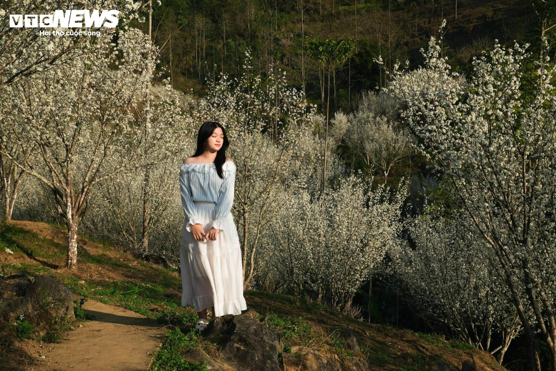 Nhiều du khách cũng tìm đến Lùng Phình trong những ngày này để giữ lại những khoảnh khắc đẹp bên hoa mận trắng.