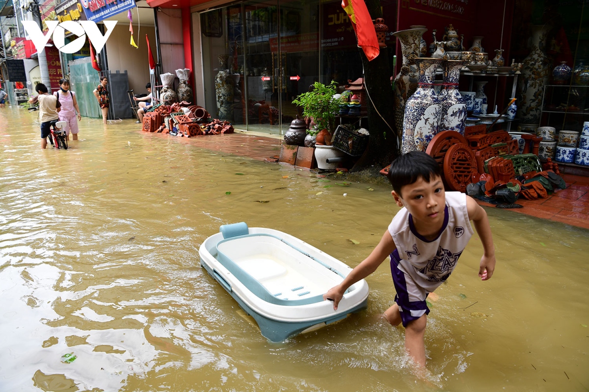 Tại khu vực làng gốm Bát Tràng huyện Gia Lâm, Hà Nội, nước cũng đổ về từ chiều 11/9, toàn bộ khu vực cũng bị cắt điện. |