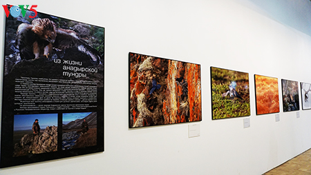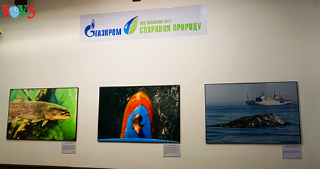 Năm 2017 được lấy làm “Năm sinh thái” của LB Nga và cũng là năm kỷ niệm tròn 100 năm thành lập hệ thống bảo tồn thiên nhiên Nga. Chính những nội dung này cũng được thể hiện rất rõ trong không gian trưng bày các bức ảnh thiên nhiên Nga. Đó là những bức hình rất “đắt” như Hổ, báo ở nhiều khu vực khác nhau, những chú chim, thú mùa đông, gấu trắng miền Bắc cực… rồi cảnh núi lửa, hồ băng… cả những hình ảnh tuyết phủ và tinh thể tuyết qua kính hiển vi v.v…