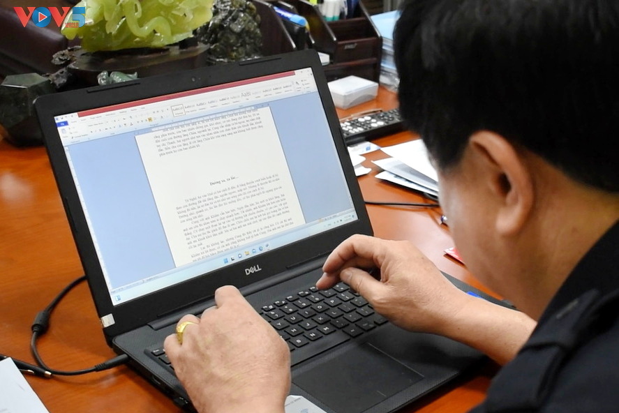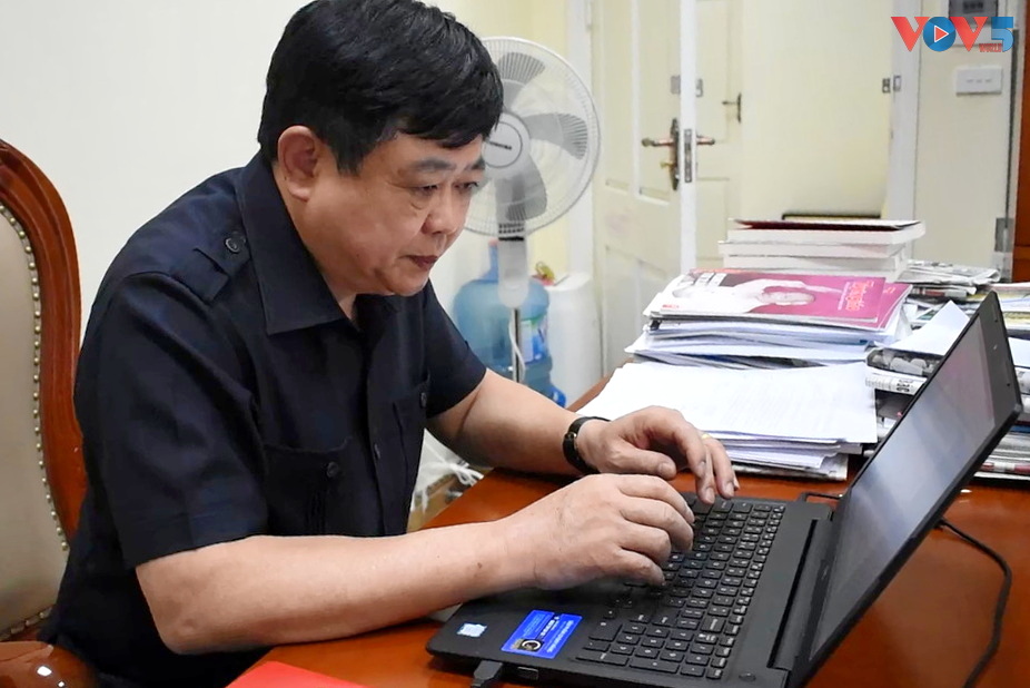 | Tác giả Nguyễn Thế Kỷ tại phòng làm việc. |