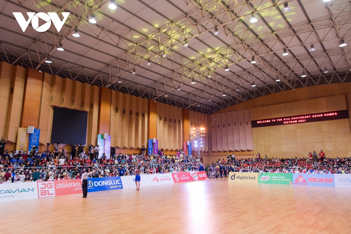 Chiều 15/5, tại nhà thi đấu Long Biên, môn Khiêu vũ thể thao (Dancesport) chính thức được khởi tranh.
