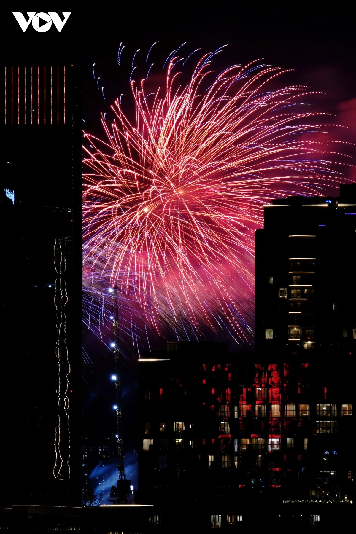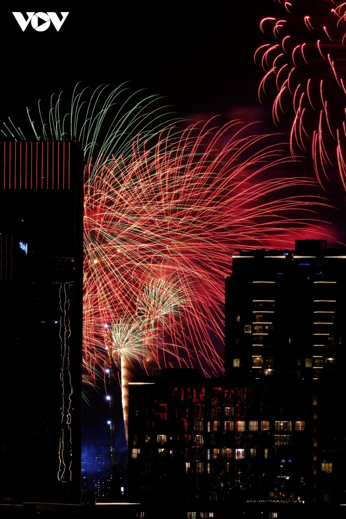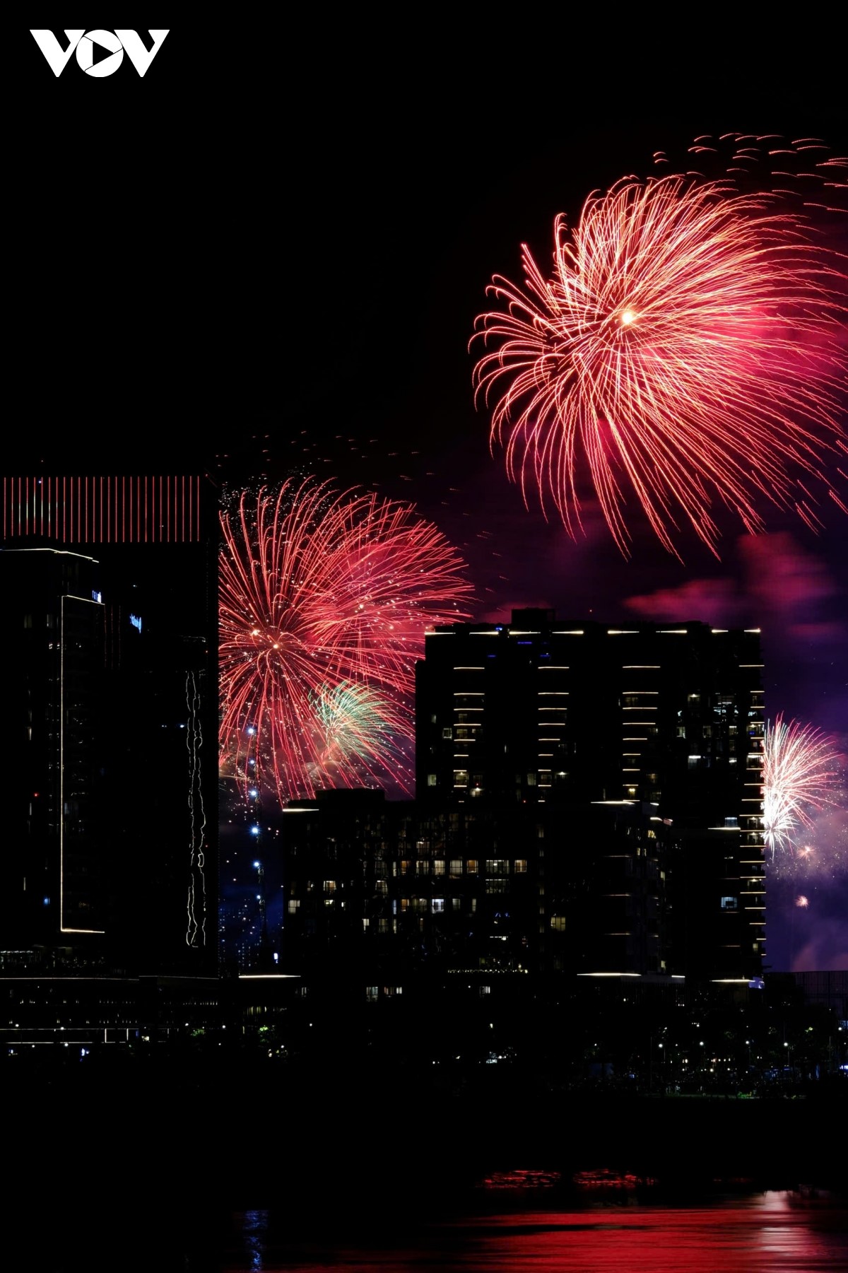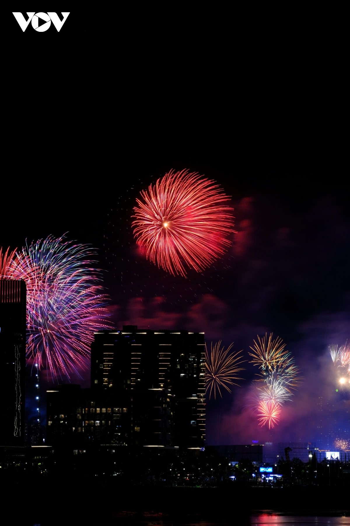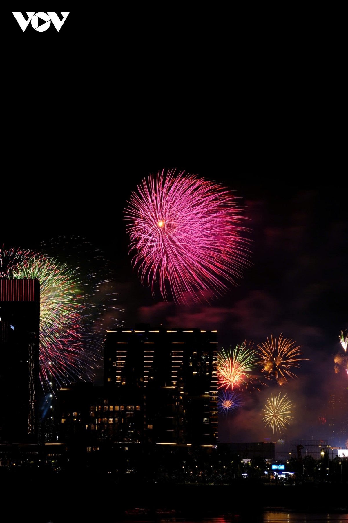 Từng đợt pháo hoa tung ra như một biểu tượng của niềm vui đoàn tụ và khát vọng hoà bình. |