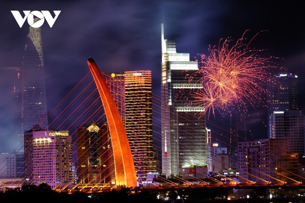 Màn bắn pháo hoa rực rỡ, lung linh trên bầu trời TP Hồ Chí Minh đã mang lại những khoảnh khắc khó quên cho tất cả người dân trong thời khắc ý nghĩa của dân tộc. |