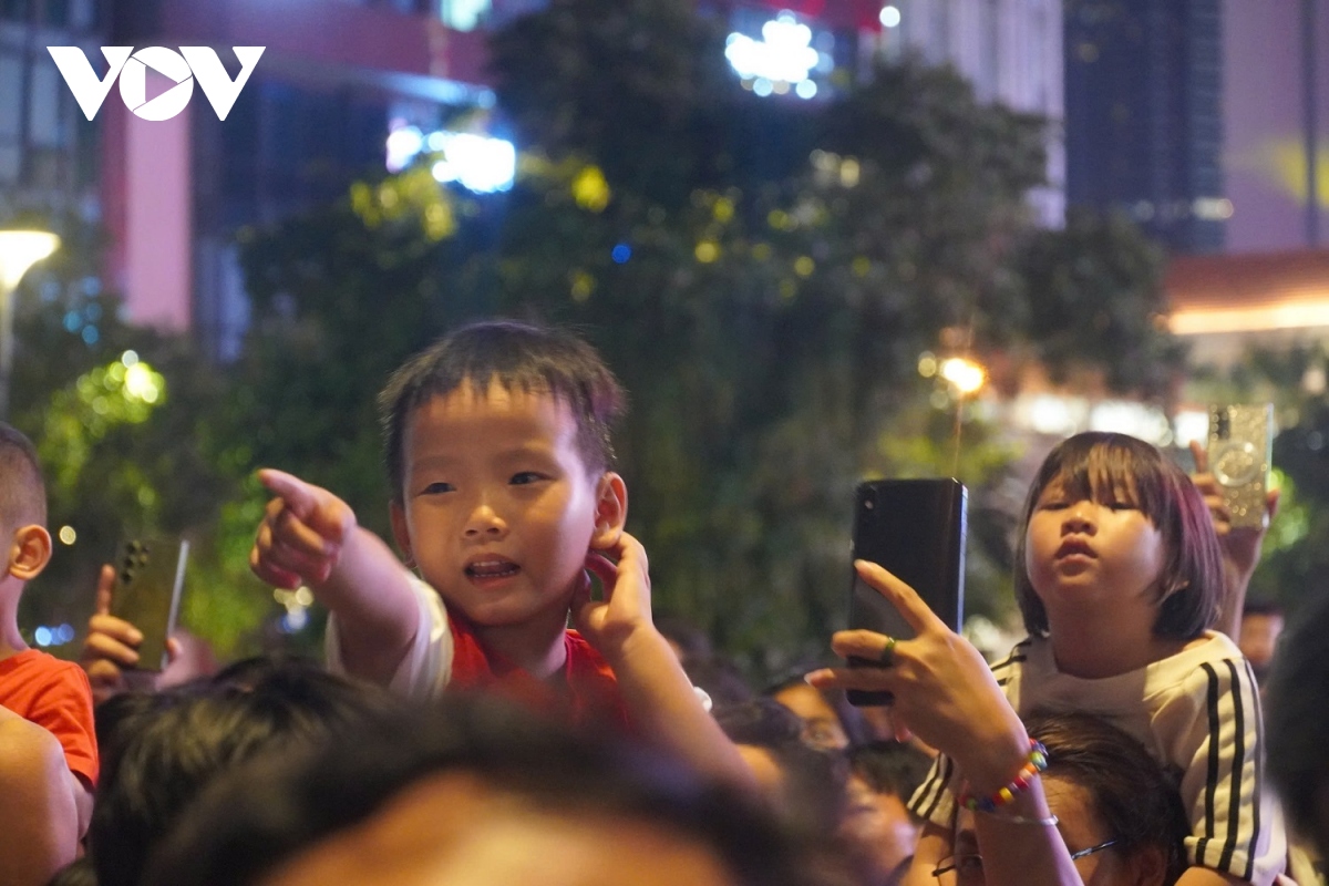 Các em nhỏ chăm chú theo dõi màn bắn pháo hoa trong 15 phút. |