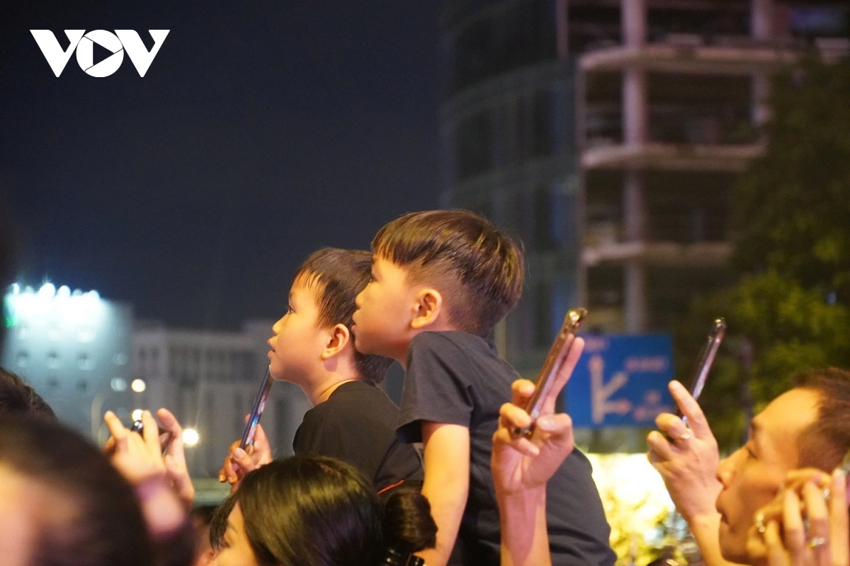 Nhiều gia đình đưa con nhỏ từ các quận khá xa để đến trung tâm thành phố xem bắn pháo hoa mừng Quốc khánh 2/9 năm nay. |
