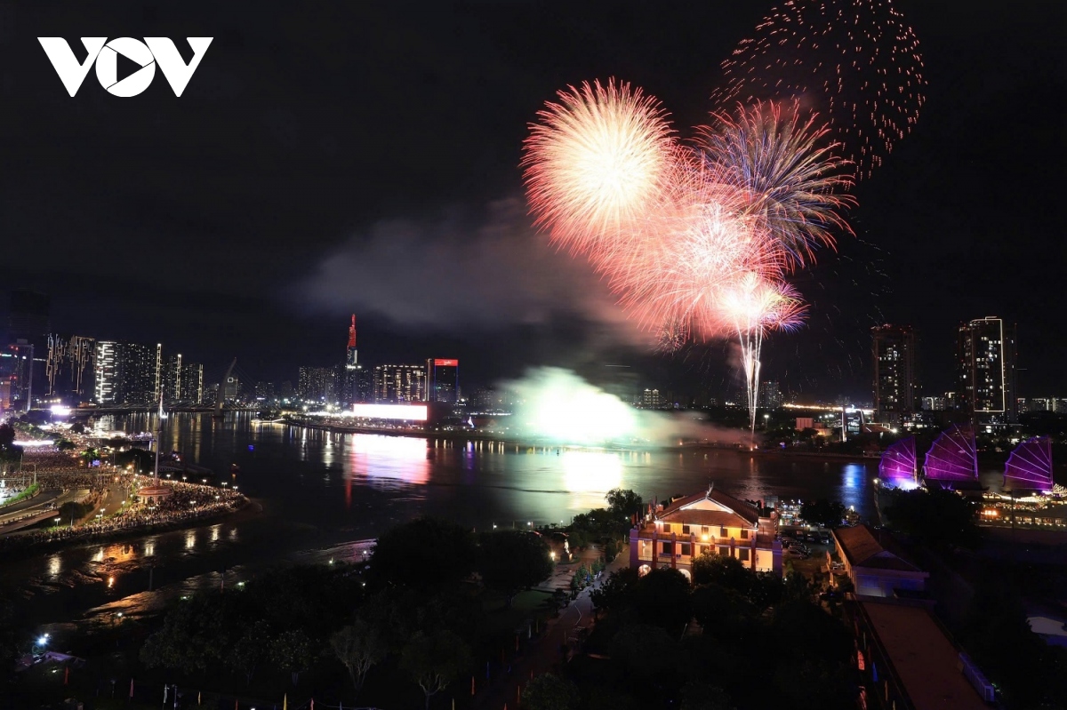 Đúng 21 giờ, pháo hoa tầm cao được bắn tại đầu đường hầm sông Sài Gòn (TP. Thủ Đức) và tầm thấp tại Công viên văn hoá Đầm Sen (Quận 11). |