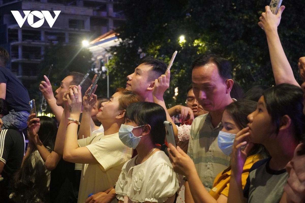 Người dân dùng điện thoại để ghi lại màn bắn pháo hoa. |