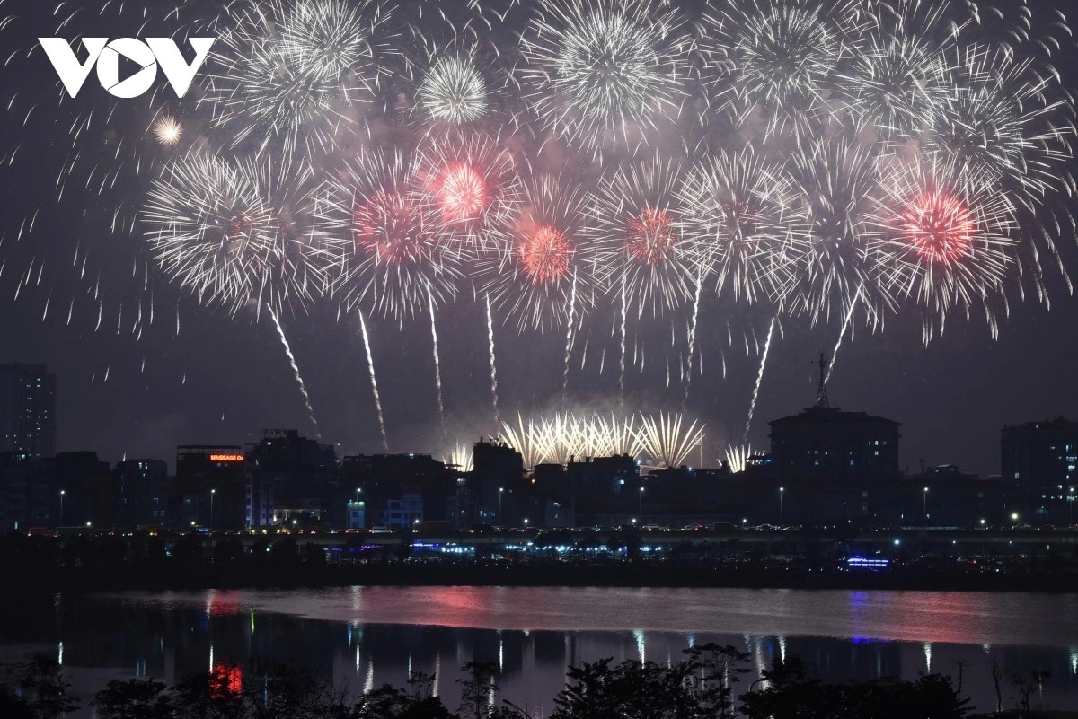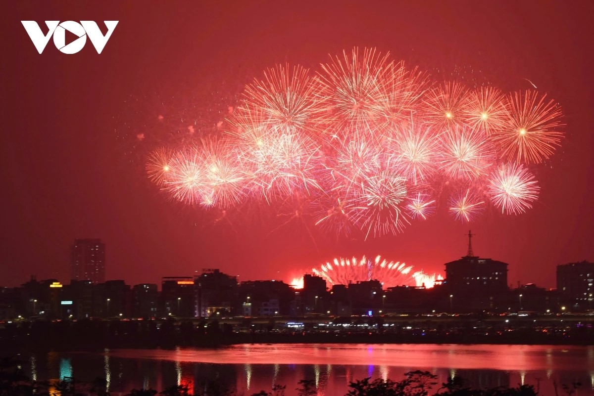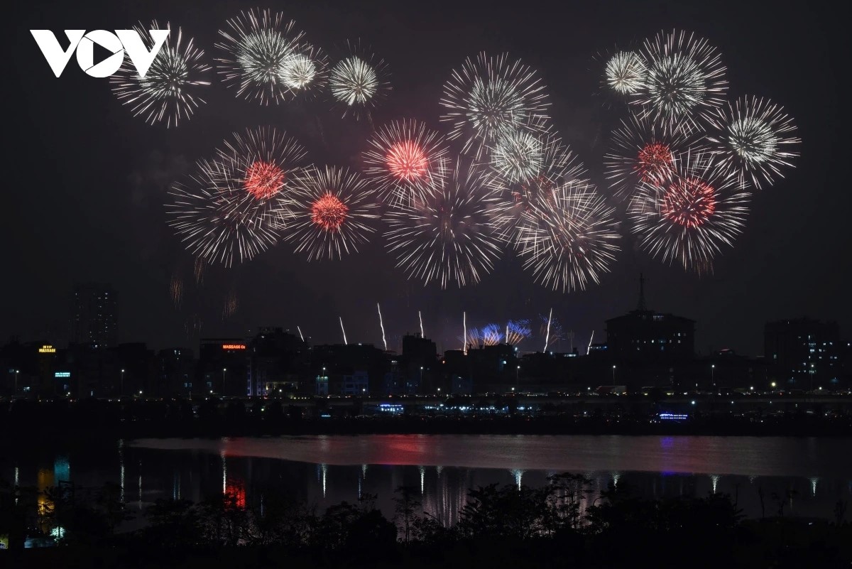 Điểm nhấn được chờ đợi nhất của chương trình là màn bắn pháo hoa nghệ thuật với quy mô lớn, “chưa từng có” tại Hà Nội. Ảnh: VOV